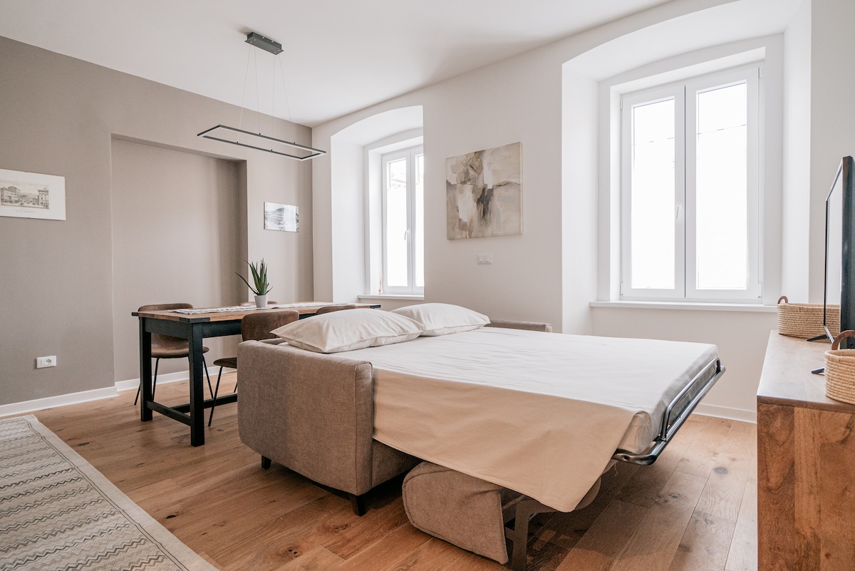 Apartemen ini, baru saja direnovasi (April 2023) dan berada di tengah Trieste (kurang dari 10 menit berjalan kaki dari Piazza Unità), telah dirancang untuk menyambut tamu di lingkungan yang modern dan santai, di mana mereka bisa langsung merasa di rumah! Lokasi, bangunan, prosedur check - in... semuanya dirancang agar sederhana dan ramah! Kunjungi juga apartemen lain yang saya kelola di Trieste dengan mengakses halaman profil saya!
