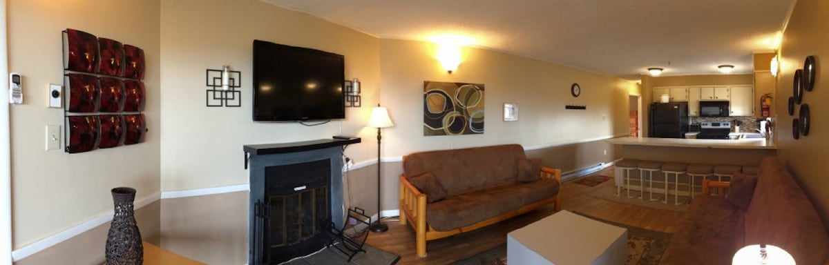 2nd Floor Ski In Ski Out Condo at Winterplace. The condo is located on the second floor and you are very short walk to the slopes with a great balcony view. Both bedrooms have private access to the bathrooms. There is a bunk room for the kids or young at heart. The kitchen is equipped with all amenities that you would need to cook a full meal. The living room has a futon, large sectional, 52 inch Smart TV, and a heat-emitting electric fireplace.