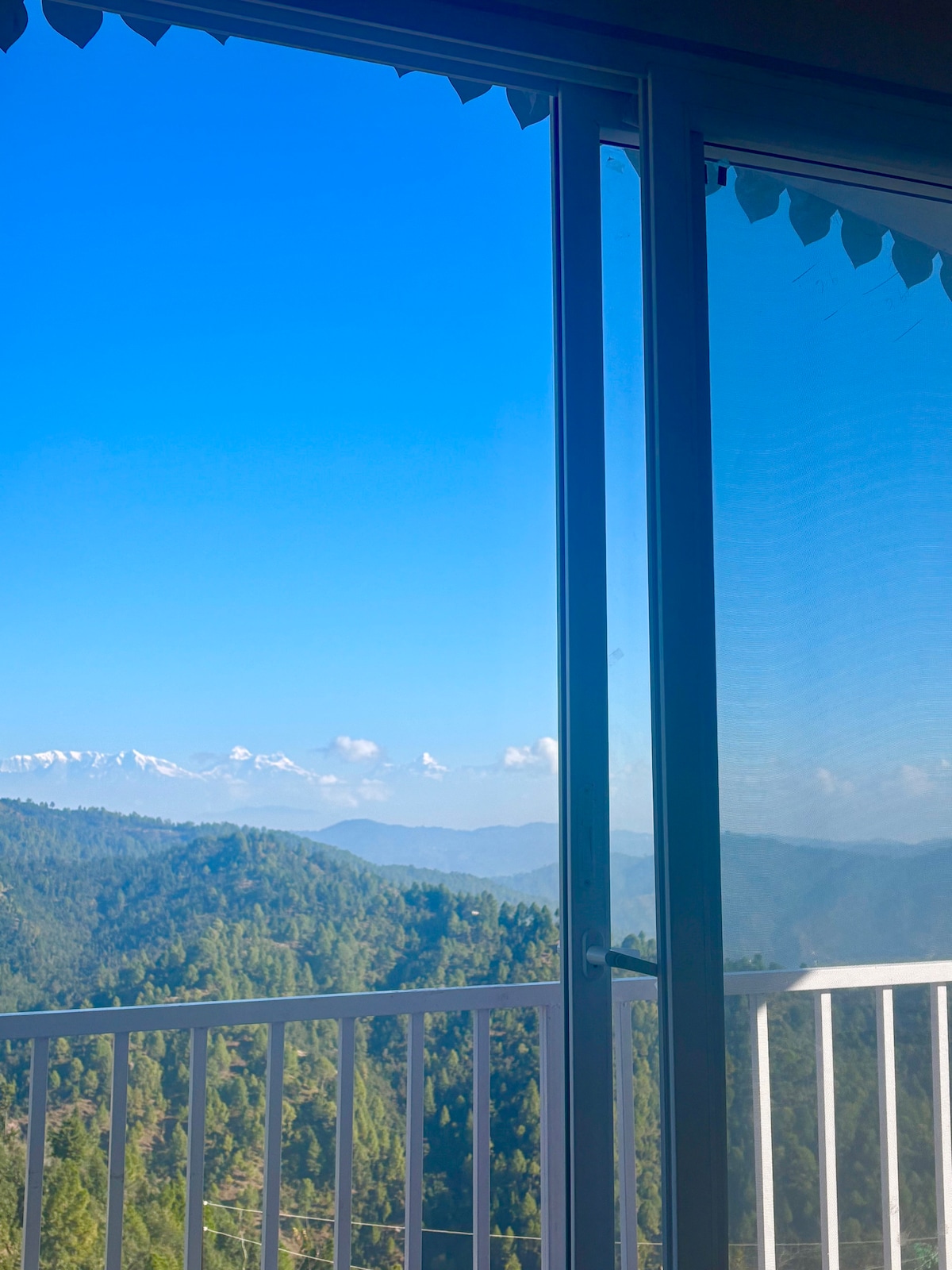 Our home was featured in the Interiors magazine ‘Inside Outside’. Get away from it all and far from the madding crowd. Enjoy views of the valley and the stunning Kumaon peaks from every room. This is a retreat for day dreamers, nature lovers, bird watchers. There is no TV in the house. The beautiful forest walks and spending time in nature is all you need! Wake up to the sound of birds and look east for the spectacular sunrise! Not suitable for infants toddlers and younger children.