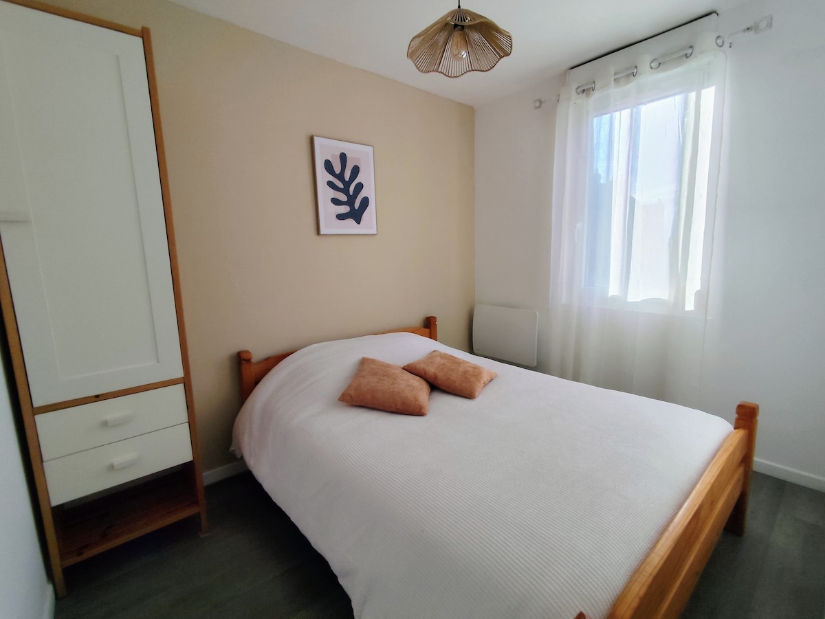 Apartemen seluas 35 m2, cerah, tenang dan nyaman hanya 400 m dari laut dan 50 m dari jalan perbelanjaan 🌊☀ - ruang tamu dengan sofa convertible 140x190 dan dapur kecil yang lengkap untuk 4 orang (senseo, microwave,...) - kamar tidur luas dengan tempat tidur queen size 160x200 (kasur berkualitas tinggi) dan ruang ganti besar - Kamar mandi: pancuran, wastafel, penyimpanan, toilet Tersedia selimut, bantal, handuk teh, alas pancuran. Tersedia tempat parkir di jalan. Seprai dan handuk opsional (beri tahu 48 jam avt)
