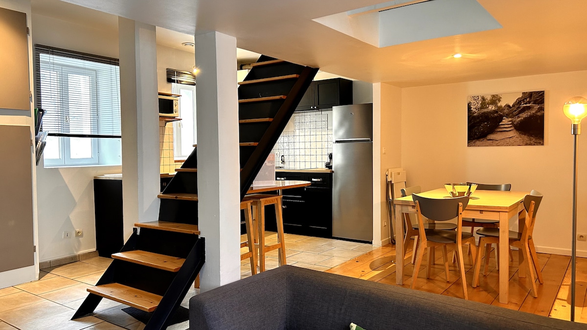 Dua kamar yang menawan di dupleks independen, benar - benar direnovasi, menghadap halaman umum yang indah (tersedia halaman/ruang tamu yang luas). Terletak di antara jalur pendakian Fontainebleau Forest dan Loing. Kebersihan berkualitas disediakan oleh kami ( termasuk dalam harga). Penyewaan sepeda (termasuk listrik) mungkin dari tetangga kami (petunjuk di foto terakhir iklan). Jalur sepeda untuk dijelajahi di jalan setapak Kanal Loing (Scandibérique).
