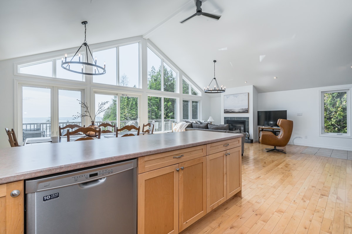 Nikmati pemandangan panorama Georgian Bay dari pondok modern yang menawan di Paynter's Bay ini. Hanya delapan menit dari Owen Sound, pondok kami juga berbatasan dengan Area Konservasi Hibou yang tenang dan indah di mana Anda dapat menikmati birding, hiking di hutan dan garis pantai, dan pantai berpasir yang bagus dan taman bermain modern untuk anak - anak. Berpelukan di samping kompor kayu Morso modern yang cantik. Petualangan menanti Anda dengan banyak ski, bersepeda, mobil salju, dan keajaiban air terjun Niagara Escarpment di dekatnya.