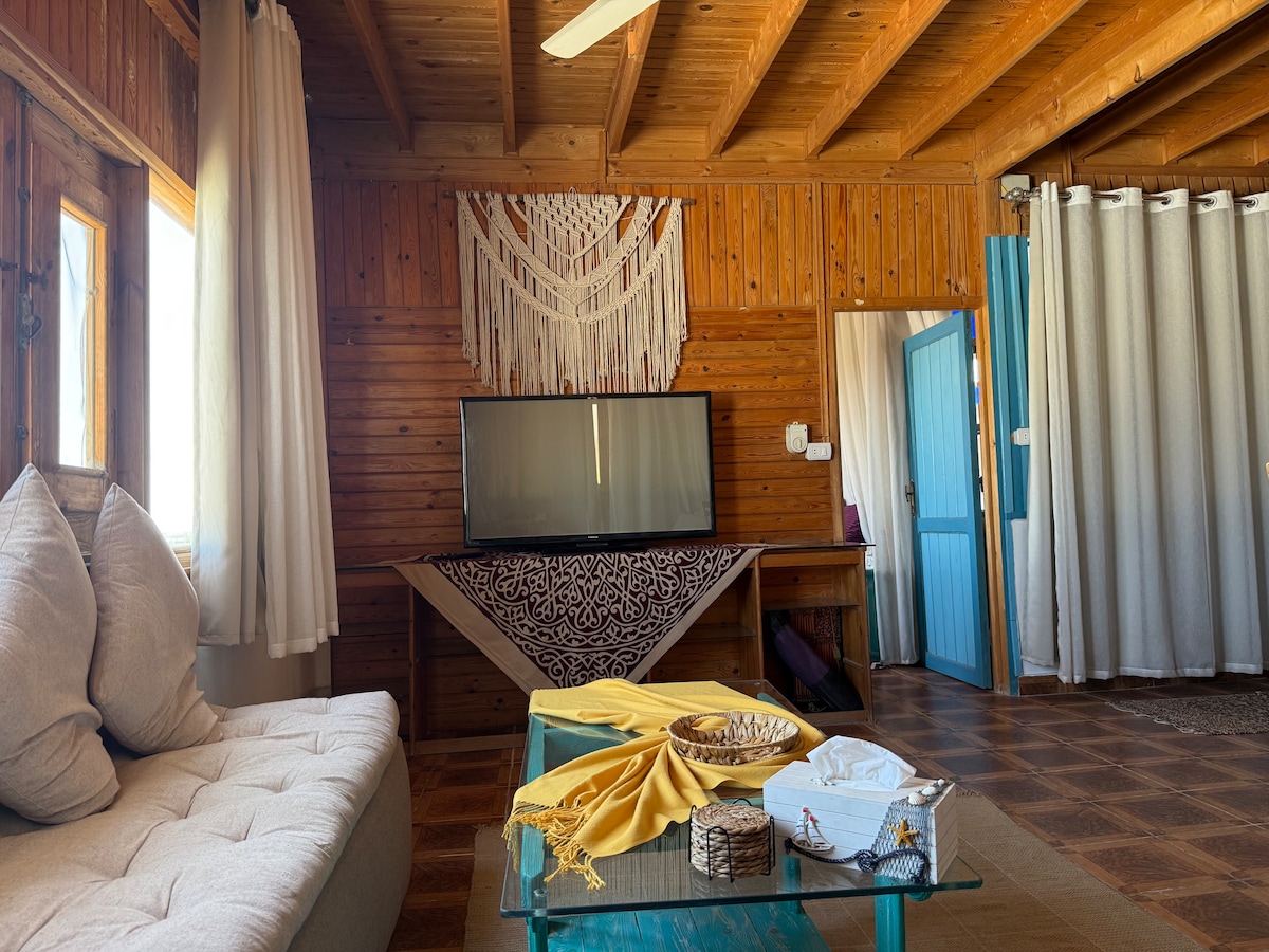 Selamat datang di tempat persembunyian atap yang bermandikan sinar matahari di area Mercusuar utama Dahab. Hanya beberapa menit berjalan kaki dari laut, kafe, dan pusat penyelaman, namun tersembunyi di halaman yang tenang jauh dari jalan. Yang paling menarik adalah teras atap pribadi yang besar dengan pergola kayu dan angin laut — tempat liburan kecil yang sempurna di atas Dahab.
