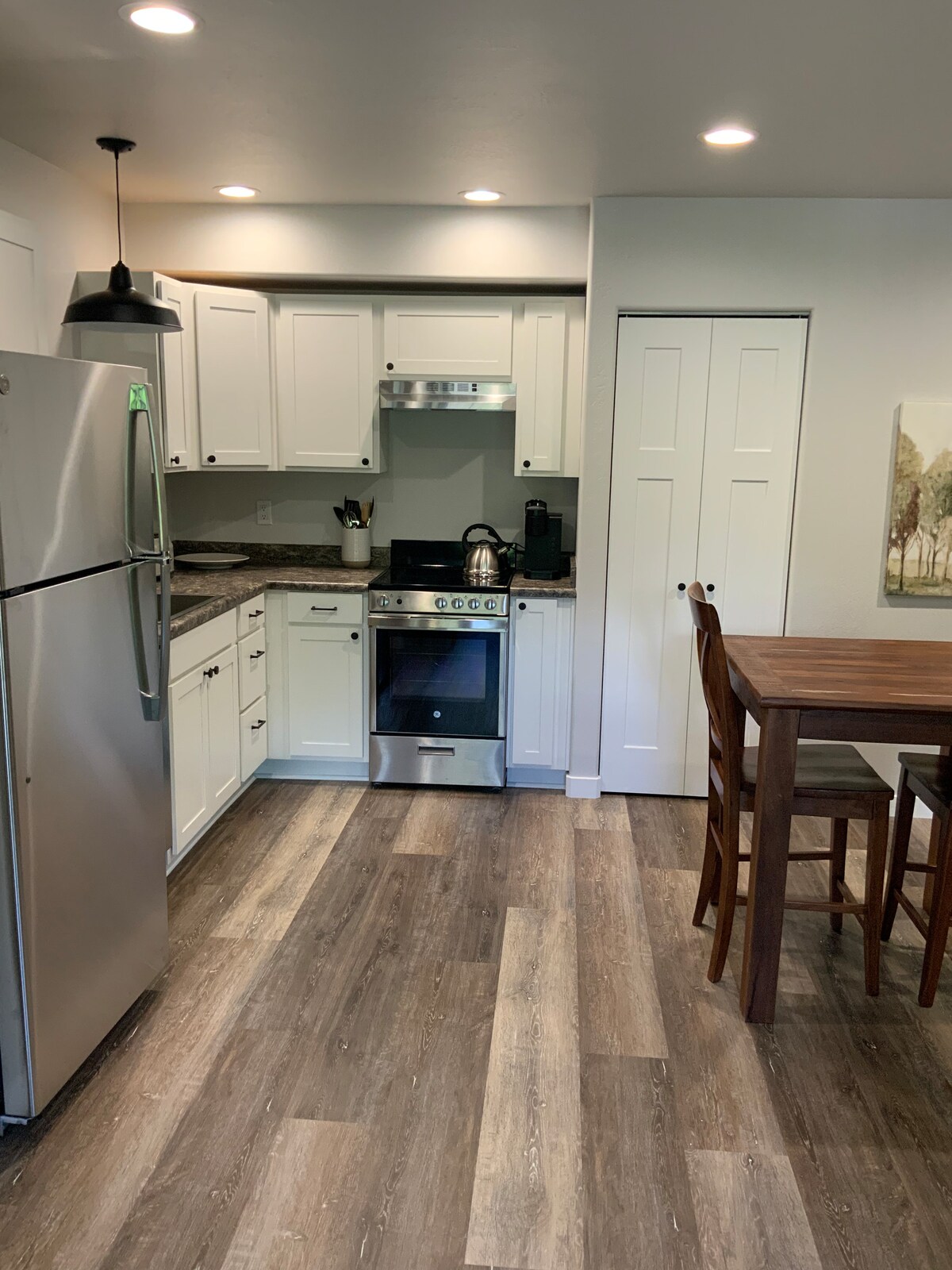 With breathtaking views of the Rogue River, our stylish one bedroom rental offers the perfect blend of luxury and tranquility. Spend your days fishing, rafting, or simply lounging by the water with a glass of wine. The bedroom features a king-sized bed with plush linens, and the living area has a comfortable twin trundle bed. The kitchen is fully equipped with stainless steel appliances and all the essentials. Book your stay now and discover the beauty of the Rogue River!