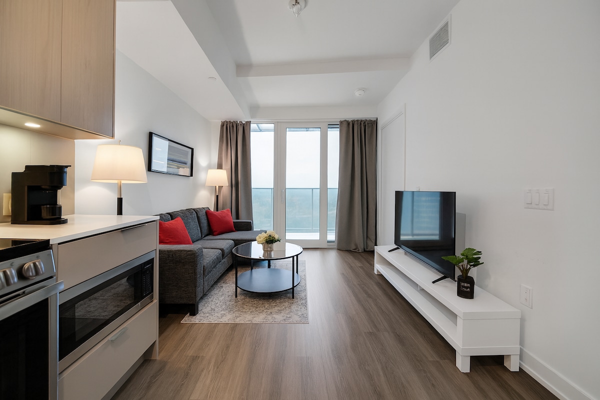 Kondominium 1 tempat tidur yang bergaya dan sentral di Pusat Kota Mississauga, beberapa langkah ke Square One, Celebration Square, Sheridan College, dan transit. Unit modern ini memiliki tata letak terbuka yang cerah, dapur lengkap, Wi-Fi cepat, TV pintar, laundry dalam suite, balkon pribadi, dan parkir gratis. Berjalan kaki ke restoran, toko, acara, dan hiburan terbaik. Sangat cocok untuk perjalanan bisnis, liburan akhir pekan, perjalanan belanja, dan masa inap jangka panjang.