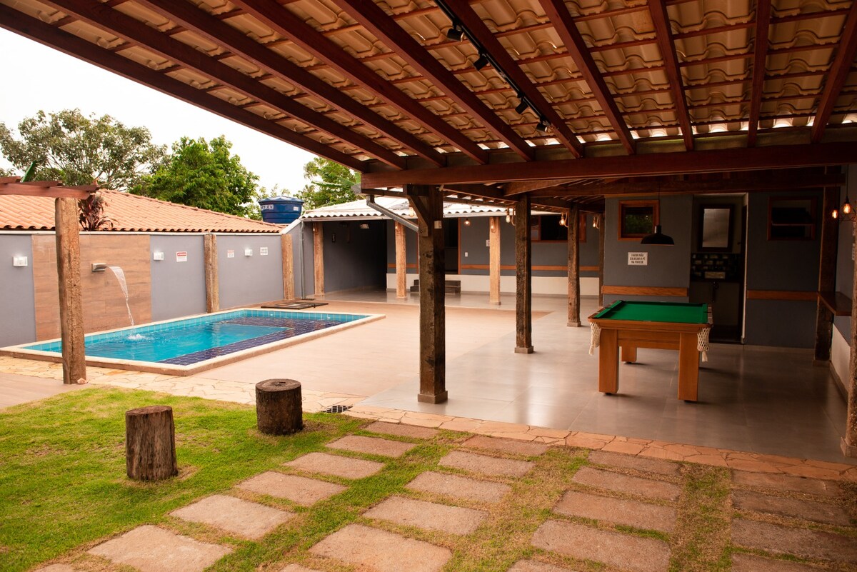 ✨PAKET LIBURAN✨ Selamat datang di Encounter of Dream Ranch, di sini Anda akan menemukan: ✔️Rumah untuk hingga 14 orang Kompor ✔️ kayu bakar dengan kumparan ✔️5 Kamar Tidur dengan kipas angin gantung ✔️Kamar mandi - 5 toilet dan 6 shower, baik di kabin terpisah. Ada 4 pancuran listrik dan 2 dengan ular; ✔️Area gourmet, dengan area tempat tidur gantung, api unggun, 2 shower dan barbekyu ✔️TV 41" ✔️Wi - Fi. ✔️ Set lengkap, kecuali handuk air terjun ✨Kami menyewakan untuk acara dan kursus✨