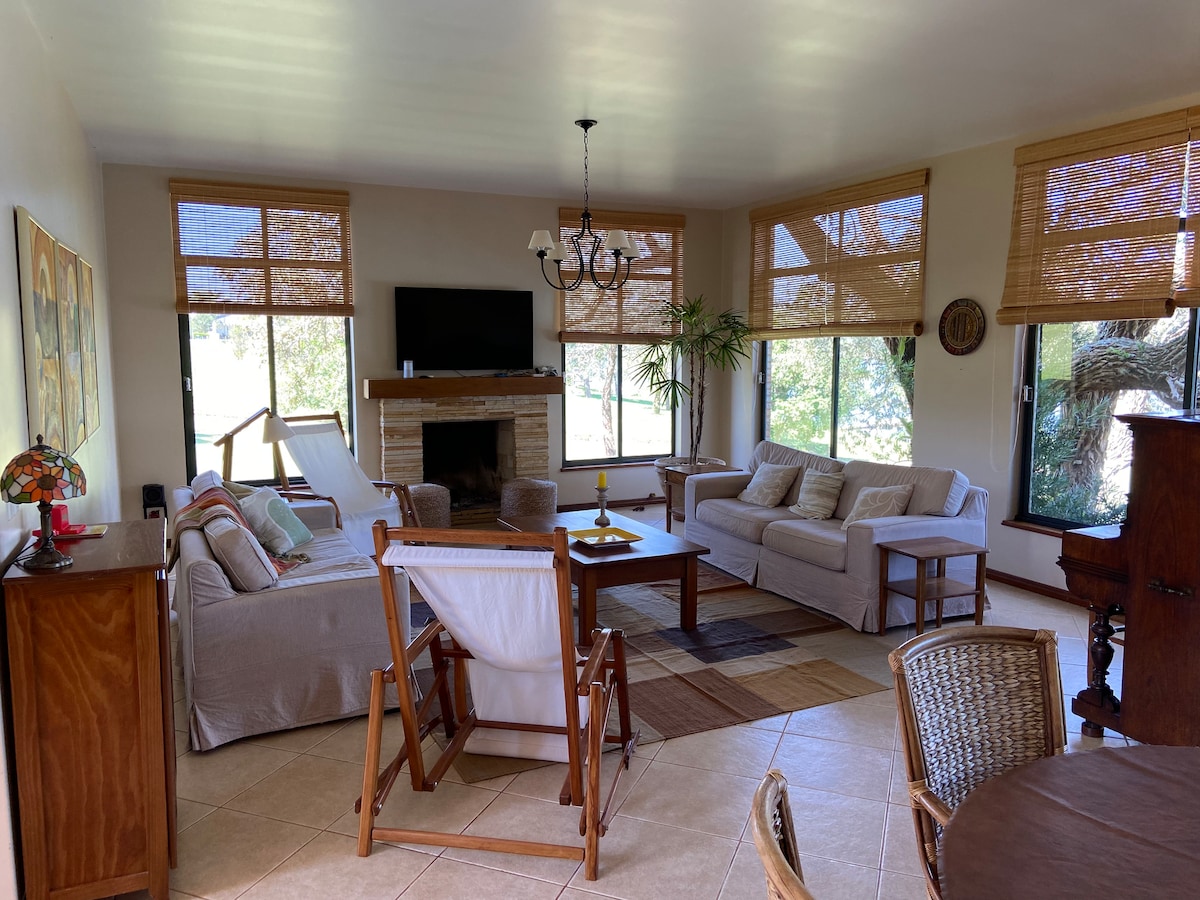 Kami terletak di depan Dam, di dalam Condomínio Rivieira Santa Cristina 3 Rumah yang penuh gaya dan sangat cocok untuk perjalanan grup. Kami memiliki dua teras, satu dengan pemandangan bendungan dan yang lainnya dengan matahari terbenam terbaik yang pernah dilihat Setiap hari kami menerima kunjungan burung yang tak terhitung jumlahnya dan jika Anda mencari hari - hari yang tenang dan nyaman untuk bersantai, cobalah menghabiskan waktu di sini dan Anda akan mendapatkan pengalaman terbaik yang menyatukan kenyamanan dan modernitas, dengan ketenangan dan suara burung dan pemandangan terbaik!