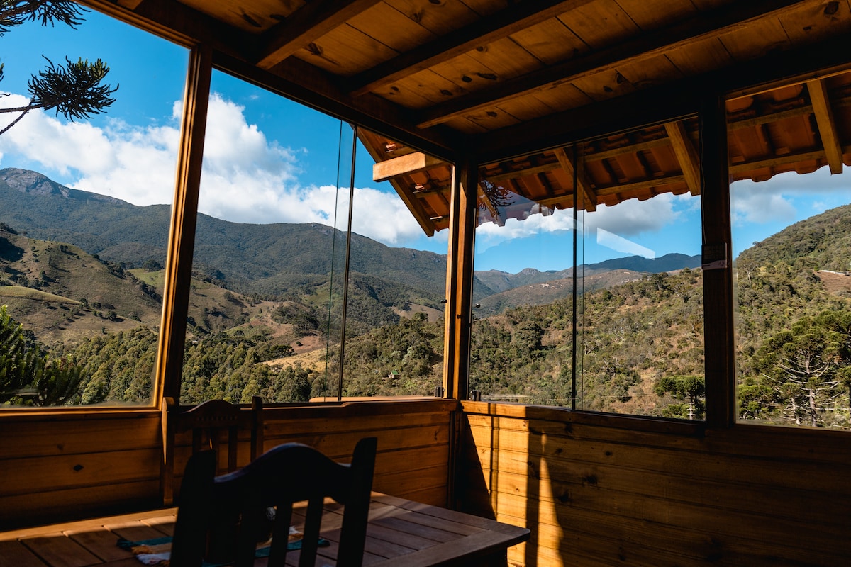 Tempat yang sempurna untuk beristirahat dan bersantai dengan bak mandi air panas yang menghadap pegunungan Mantiqueira. Chalet ini terletak di puncak bukit, dengan pemandangan panorama 360° pegunungan Mantiqueira, kami berjarak sekitar 1 km dari Sungai Aiuruoca, dalam batas dengan Taman Nasional Itatia (sekitar 16 km dari Pico das Agulhas Negras) dan di daerah pedesaan Itamonte. Tempat kami sangat ideal bagi mereka yang ingin beristirahat dari rutinitas sehari - hari.