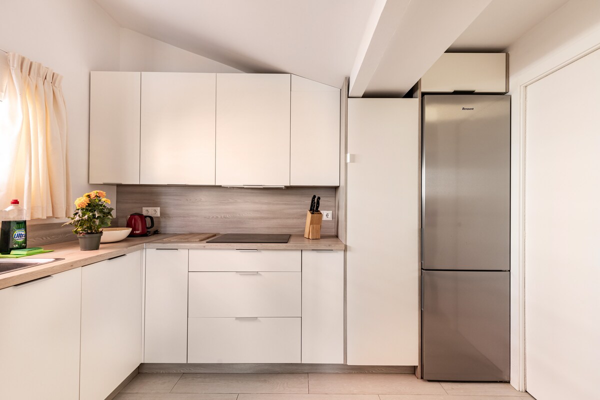 Bekas rumah nelayan, menawan, direnovasi sepenuhnya, terletak "menghadap laut ", 20 meter dari pasir di pantai. Terdiri dari satu lantai dasar dengan teras; memiliki dapur besar yang dilengkapi dengan baik, kamar dengan tempat tidur 150 cm, dengan kamar mandi pribadi, dan satu lagi dengan dua tempat tidur 90 cm; kamar mandi kedua, tempat tidur sofa, meja kerja, dan ruang makan fungsional dengan meja dan lemari. Selain itu, mesin cuci - pengering, pencuci piring, oven, microwave, pembuat kopi, dan pembuat sandwich. Anda dapat menyewa tempat parkir secara terpisah.