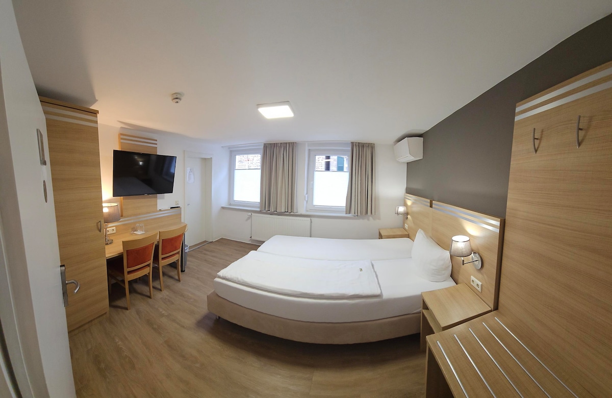 Kamar ganda Anda yang nyaman – berlokasi di pusat kota & berfasilitas lengkap! Selamat datang di kamar ganda kami yang nyaman, cocok untuk pasangan, wisatawan solo, dan pelawat bisnis. Tempat tidur ganda yang nyaman menanti Anda. Gunakan dapur bersama, ruang tamu, dan dua kamar mandi yang bisa dikunci per lantai. Wi-Fi gratis sudah termasuk, tentu saja. Lokasi pusat kami di dekat stasiun kereta api utama tidak ada tandingannya: semua yang Anda butuhkan bisa ditempuh dengan berjalan kaki. Kami menantikan kedatangan Anda!