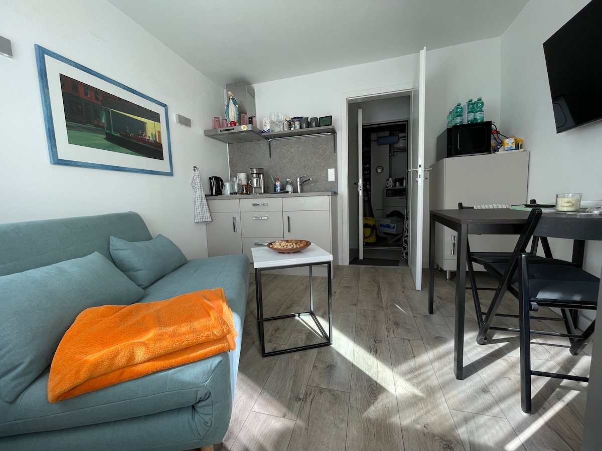 Voll möbliertes Appt., 2 min zur S-Bahn Köln Dellbrück ( 10 min zu HBF, Messe u. 20 Min zum Flughafen). Wohnküche mit Schlafempore - Zugang über eine steile Stiege - Schlafplätze 2/3 Personen, Schlafsofa im Wohnraum, Diele und eigenes Bad, Parkplatz am Haus. Eigene Terrasse auf dem Hof ruhig gelegen. Fußläufig Cafés, Restaurants und Geschäfte, Naherholung See und Wald in der Nähe .
