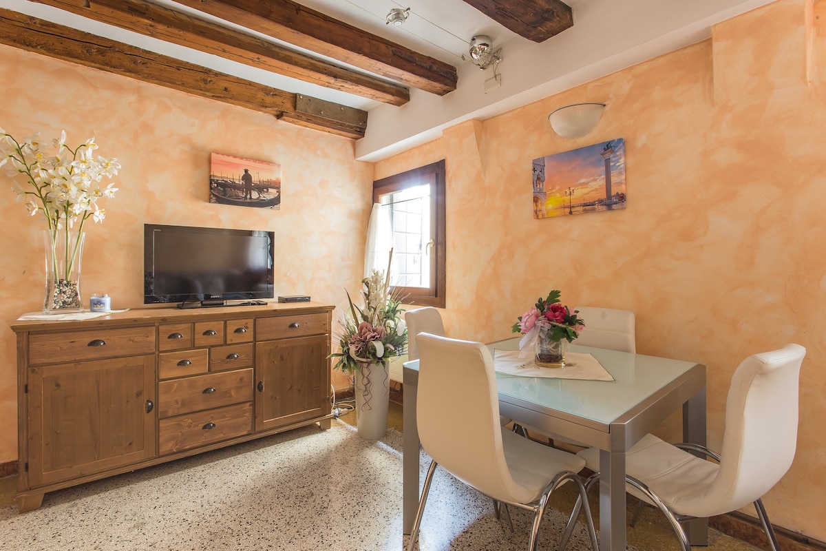 Apartemen yang elegan dan unik ini cocok untuk pasangan yang ingin menikmati romansa Venesia. Teras pribadi di atas air memungkinkan untuk sarapan romantis atau makan malam dengan cahaya lilin. Tempat tidur besar, pancuran yang luas, dan finishing kayu yang bagus mencerminkan perhatian yang luar biasa terhadap detail. Apartemen ini menawarkan semua kenyamanan: TV, mesin kopi, mesin cuci piring, Wi-Fi, dan AC.