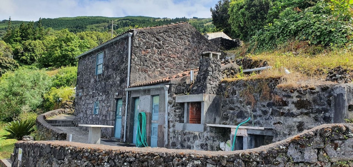 Apakah Anda ingin tinggal di pondok batu, pedesaan, namun dengan suasana dan interior modern, nyaman, romantis, ideal untuk dua orang dengan pemandangan menakjubkan? Anda berada di tempat yang tepat, ada di sini. Terdapat dek dengan kursi santai, barbekyu batu, pemandangan penuh pulau São Jorge dan kanal. Dari sisi kirinya, tebing - tebing paroki São Roque, Praínha, dan Santo Amaro do Pico, deburan ombak dan burung - burung yang gemerlap; matahari terbenam untuk jatuh cinta... Rumah ini merupakan bagian dari resor milik keluarga kecil, di mana terdapat restoran bernama Magma, toko kelontong, ruang yoga, dan kolam renang berpemanas. Ruang tamu memiliki pintu geser kaca yang membuka alam interior dan pemandangan. Tunggu apa lagi?