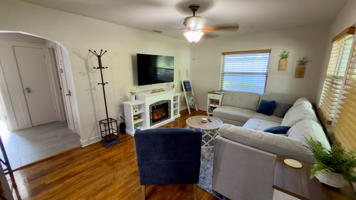 Menginap di rumah bersejarah tahun 1920-an yang ramah hewan peliharaan di Dade City yang menampilkan halaman berpagar penuh, ayunan teras depan, dan perapian.— diperbarui dengan cermat dengan kenyamanan modern. Sorotan: • 2 kamar tidur: 1 tempat tidur king, 1 tempat tidur queen + kasur angin • Ayunan teras depan — cocok untuk kopi pagi atau bersantai di malam hari • Dek dengan pemanggang untuk bersantap di luar ruangan • Firepit dengan kursi untuk malam yang nyaman • Permainan cornhole untuk kesenangan tambahan • Hanya 10 menit dari pusat kota Dade City • 15 menit dari Saint Leo University