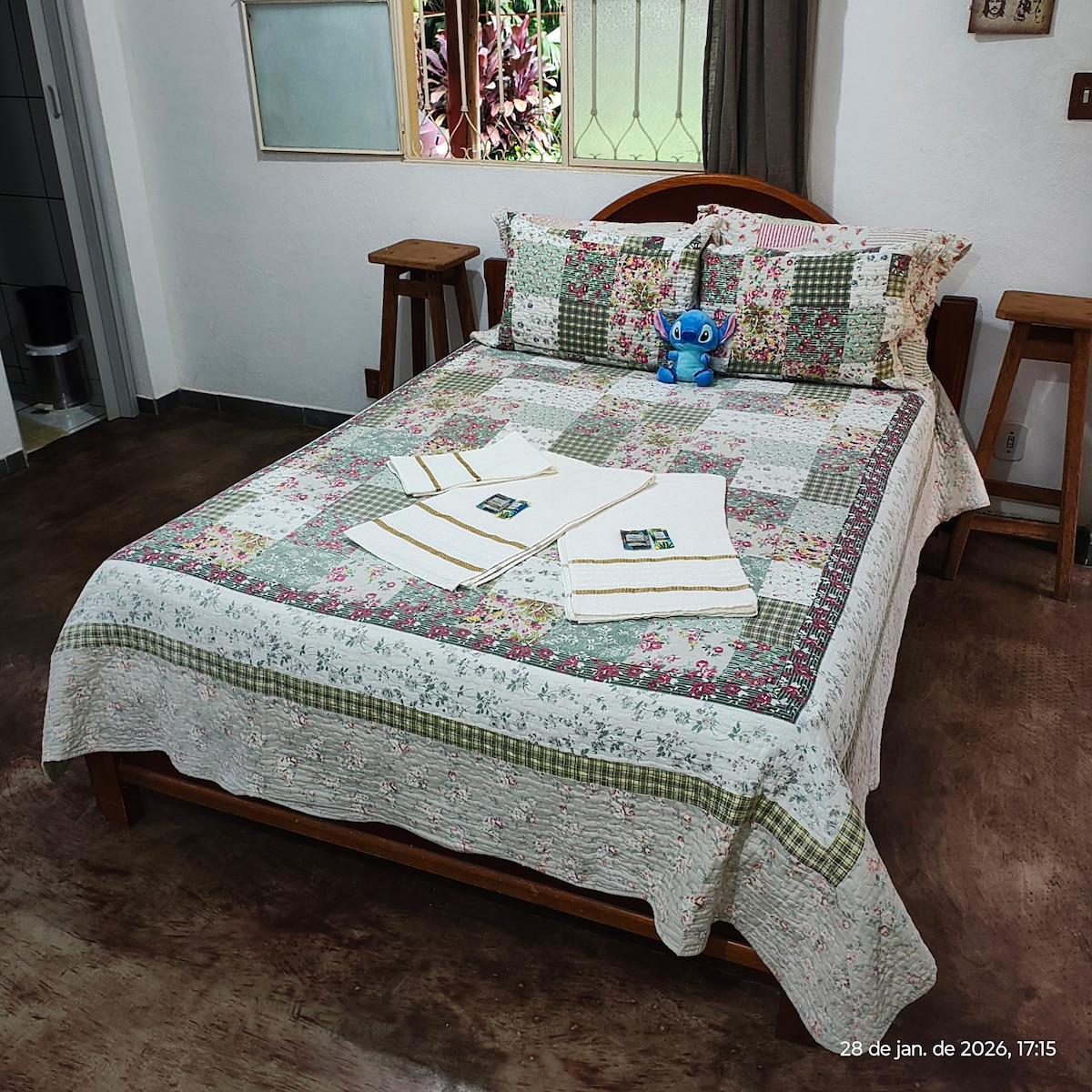 Apartemen yang sangat bagus. Kamar tidur, ruang tamu + dapur, kamar mandi, dan area layanan. Apartemen besar, finishing standar tinggi. Ini termasuk: Tempat Tidur Casal + Tempat Tidur Sofa (Pasangan) Internet FrostFree FrostFree Permukaan kompor ° Microwave; Lava e Seca Tempat tidur double Lemari penyimpanan Pancuran Bertekanan Tinggi Komoda Meja + 4 kursi TV Smart 32" Ar Condicionado Seprai dan Jubah Mandi Peralatan Dapur Misteira Pengering rambut Blender