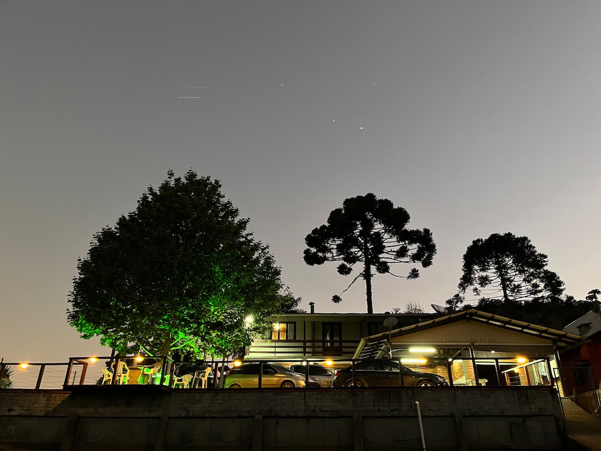 Kesederhanaan rumah di lokasi yang lebih terpencil, mengalami ketenangan dan ketenangan pikiran. Ideal untuk melepaskan diri dari rutinitas dengan penyatuan udara alam yang segar dan hijau serta ketenangan air. Balkon menghadap bendungan Pinhal. Termasuk 02 kayak 🛶 untuk digunakan (rompi pelampung🛟). Juga tersedia tongkat dan pengait 🎣 Ada kurang dari 5 km pilihan seperti: Pinhal Friends Community Feirinha, toko kelontong Pinhal, restoran Ess - haus, restoran Lindnerhof.