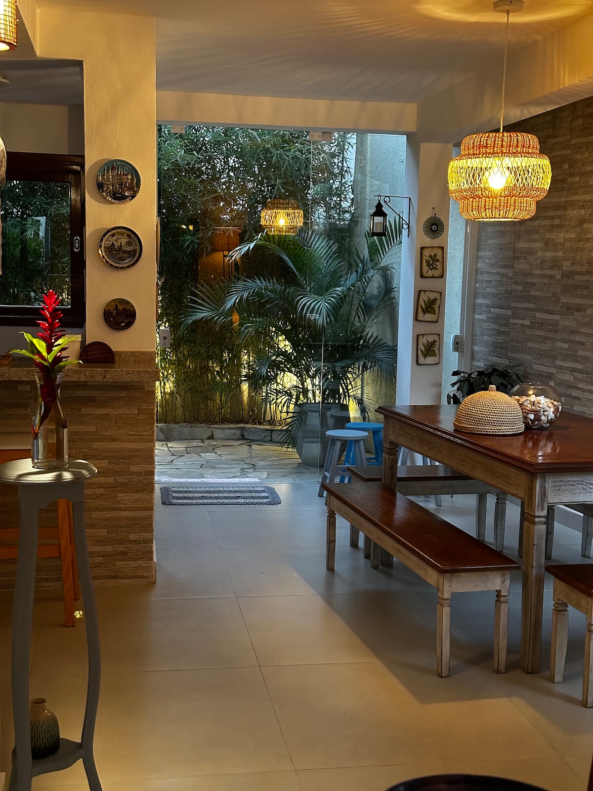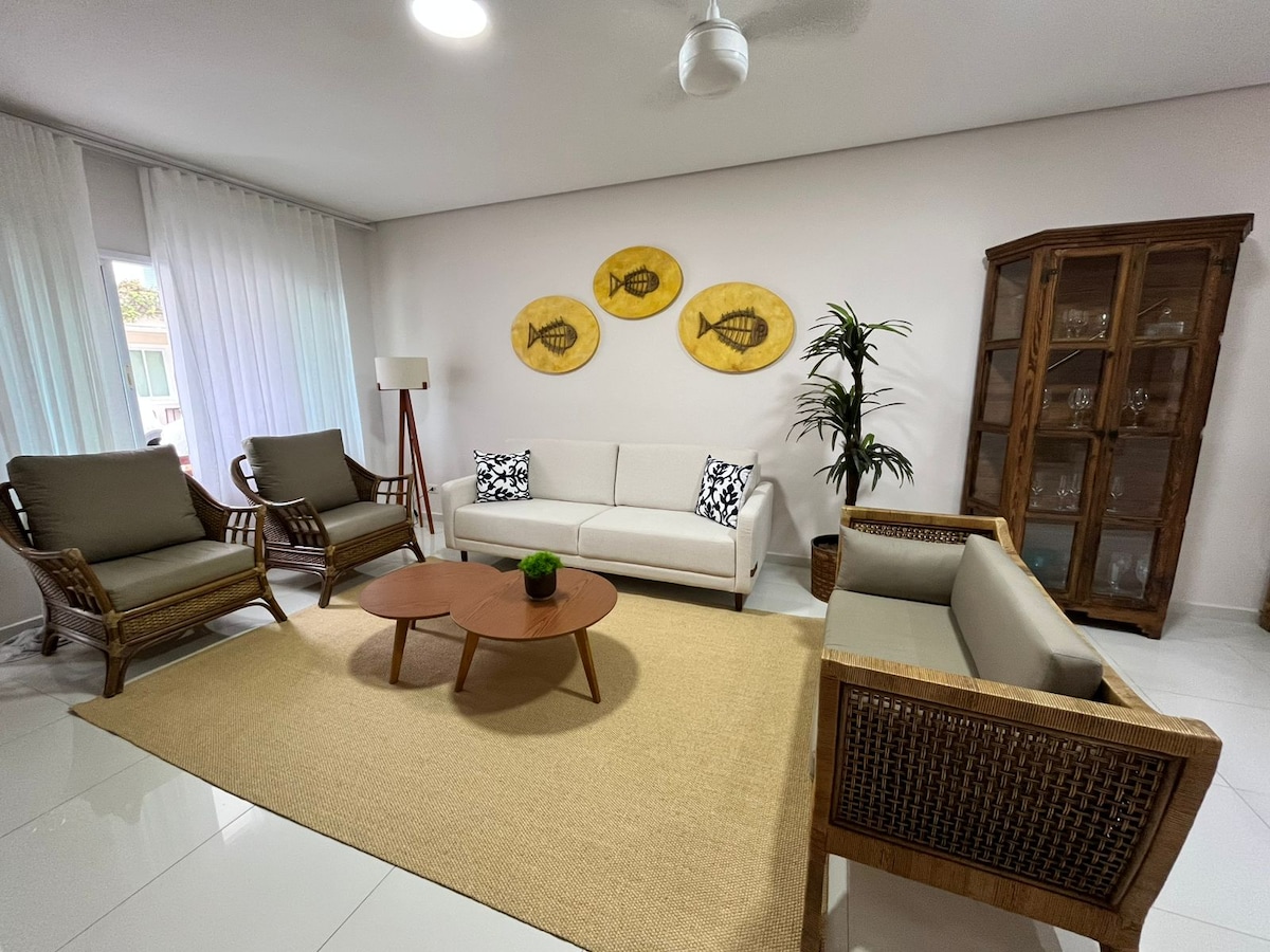 Rumah pantai yang nyaman dan modern, 220 m2, di kondominium dengan layanan keamanan 24 jam. Lokasi sempurna: 150 mts dari pantai dan 500 mts ke pusat kota. Tidak perlu mobil! Kondominium ini menawarkan layanan pantai gratis dan memiliki kolam renang yang hangat.. 4 kamar ensuite (masing - masing dengan kamar mandi sendiri), dua teras pribadi dengan pemandangan indah, dapur terbuka, dek menakjubkan dengan pemanggang luar ruangan yang dikelilingi oleh vegetasi asli. Semua kamar memiliki AC, termasuk ruang tamu dan ruang makan. Internet berkecepatan tinggi tersedia.
