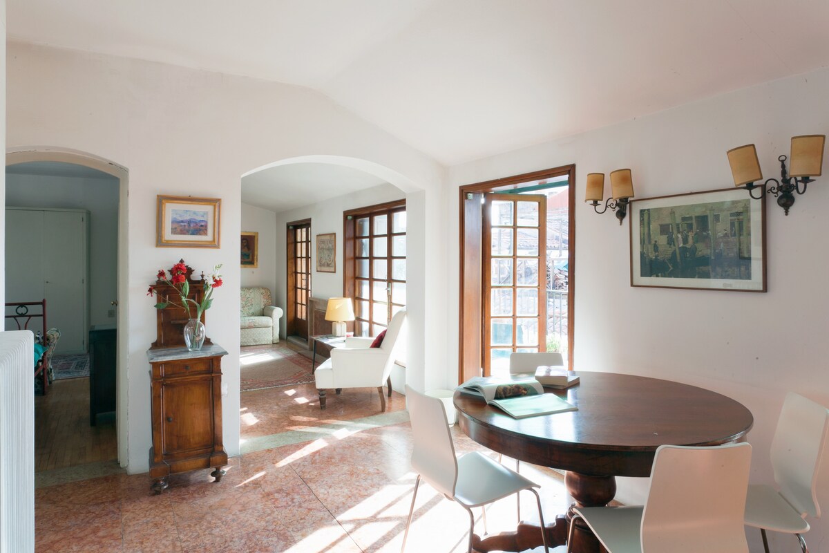 Skyline Home: matahari pagi & pemandangan atap dari lantai 3 (tanpa lift). Terletak 400 m dari Stasiun S. Lucia, tempat ini memiliki lantai Terrazzo asli, perabot abad ke-19, dan lampu gantung kaca Murano yang menakjubkan. Sangat tenang berkat ketinggian dan jendela gandanya, tempat ini menawarkan area tamu yang luas. Teknologi Lengkap: Wi-Fi Fiber & AC Senyap. Venice yang autentik dalam kondisi terbaiknya: Terletak di S. Croce dengan restoran dan “bacari” di lantai bawah. 50 m dari supermarket & 100 m dari vaporetto. cod. Reg. Ve. M0270422670