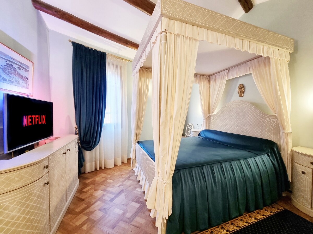 Seluruh apartemen dengan dekorasi bergaya Venesia, di palazzo pribadi dari tahun 1600 - an, dengan PEMANDANGAN YANG MENAKJUBKAN. Terletak di lantai 1, apartemen ini memiliki satu kamar tidur besar dengan tempat tidur berukuran queen. Kamar mandi ini luas dan dilengkapi dengan pancuran mandi besar. Dapur dilengkapi dengan kulkas, pemanggang roti, ketel, dan mesin Nespresso. Pintu masuknya terbuka ke ruang tamu yang sangat besar dengan pemandangan kanal tempat Anda bisa duduk dan menyentuh air sambil menikmati segelas anggur.