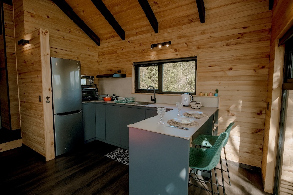 Terletak 23k dari Puerto Varas, di taman pribadi La Pajarera, kabin ini dikelilingi hutan asli, laguna, dan pohon larch berusia seribu tahun. Namanya, Quillaype, berasal dari Mapudungun kuno yang digunakan untuk menyebut Gunung Berapi Calbuco, yang pemandangannya menyertai seluruh pengalaman ini. Dengan tiga tingkat gaya alpine, tempat ini dirancang untuk keluarga dan rombongan yang ingin beristirahat, bersantai, dan merasakan esensi pedesaan Chili selatan. Ruang yang hangat dan nyaman, ideal untuk berbagi momen unik.