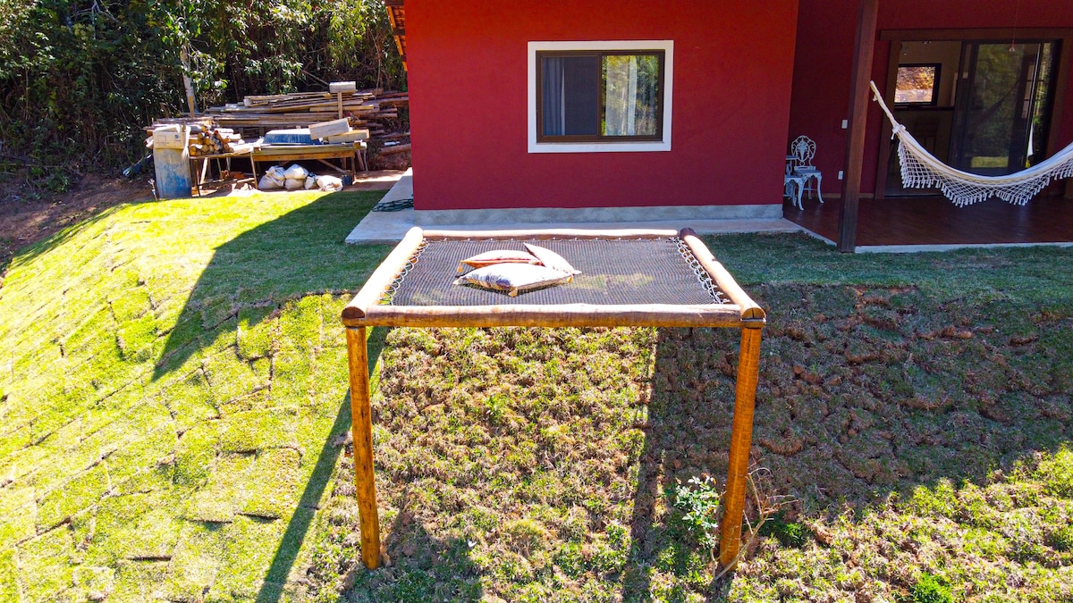 Kabin semua batu, unik, nyaman dan nyaman, dengan penyempurnaan pedesaan dalam detailnya. Rumah ini dirancang untuk membawa tamu ke pengalaman unik yang bersentuhan dengan alam. Tempat ini memiliki ruang tamu dengan perapian, balkon terbuka dengan barbekyu dan kompor kayu, area rekreasi dengan kolam renang dan dengan lapisan batu dan tambang air jernih, lapangan voli, lapangan sepak bola masyarakat, pancuran dan bendungan dengan jalur ekologi Pau Brasil.