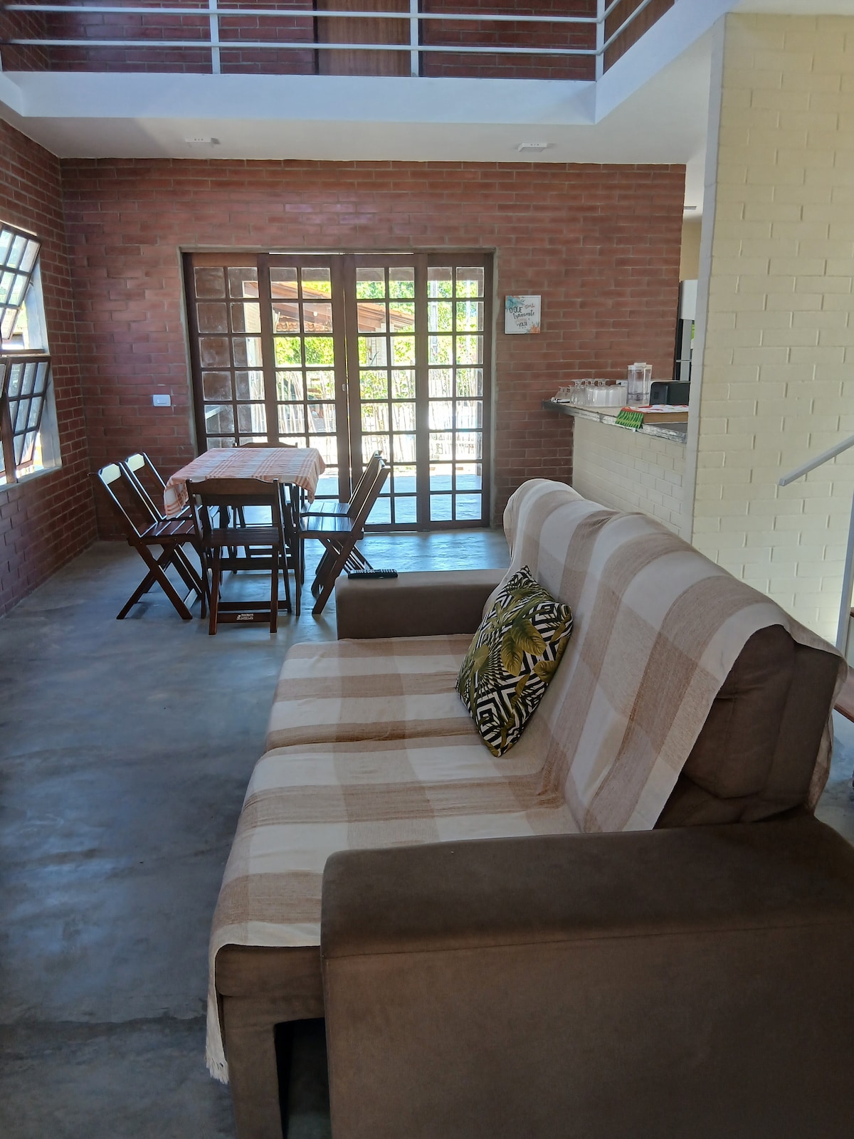 Bersantai di rumah yang tenang ini. Tempat ini berada di awal komunitas Barra de Mamanguape, tanahnya dekat dengan dua rumah lainnya dan banyak pepohonan. Dari balkon kami mengagumi tarian pepohonan, dengan bayangannya yang indah dan segar. Barra adalah APA, sehingga tidak ada rumah di dekat pantai. Untuk menuju pantai, kami menyeberangi jalur 500 m yang indah di dekat bukit pasir untuk menuju pantai. Kita bisa sampai ke Rio di tepi pantai atau berjalan kaki, menyeberangi desa, atau bahkan mobil. Barra adalah pertemuan dengan alam.
