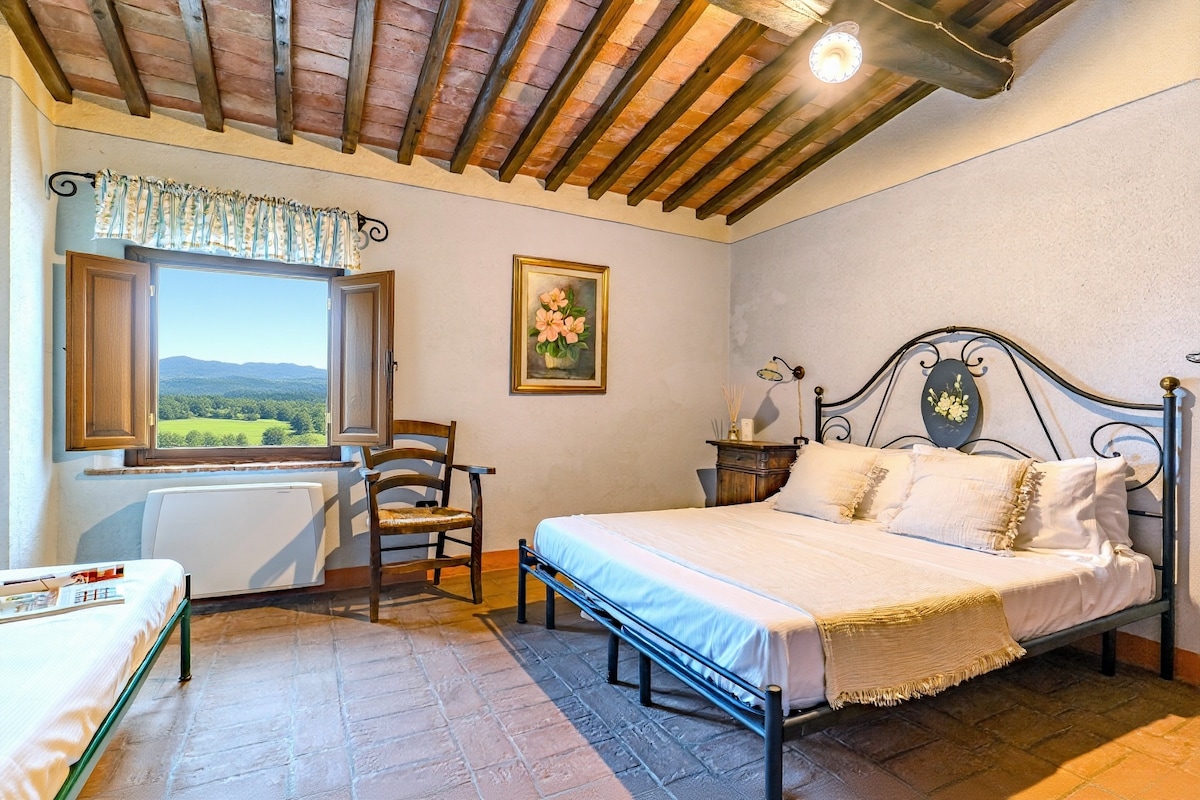 Rumah Peternakan Tuscan dengan Kolam Renang & Pemandangan Panorama
