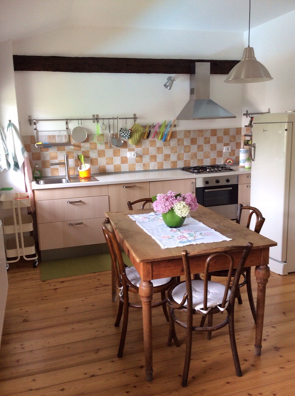 Apartemen yang nyaman dan direnovasi dengan 2 kamar tidur (1 tempat tidur double & 1 tempat tidur bertingkat) + ruang makan/ruang tamu (dengan tempat tidur sofa) + 1 kamar mandi. Apartemen ini berada di dalam properti pribadi besar dari rumah pedesaan biasa yang dikelilingi oleh taman indah. Idealnya untuk keluarga.