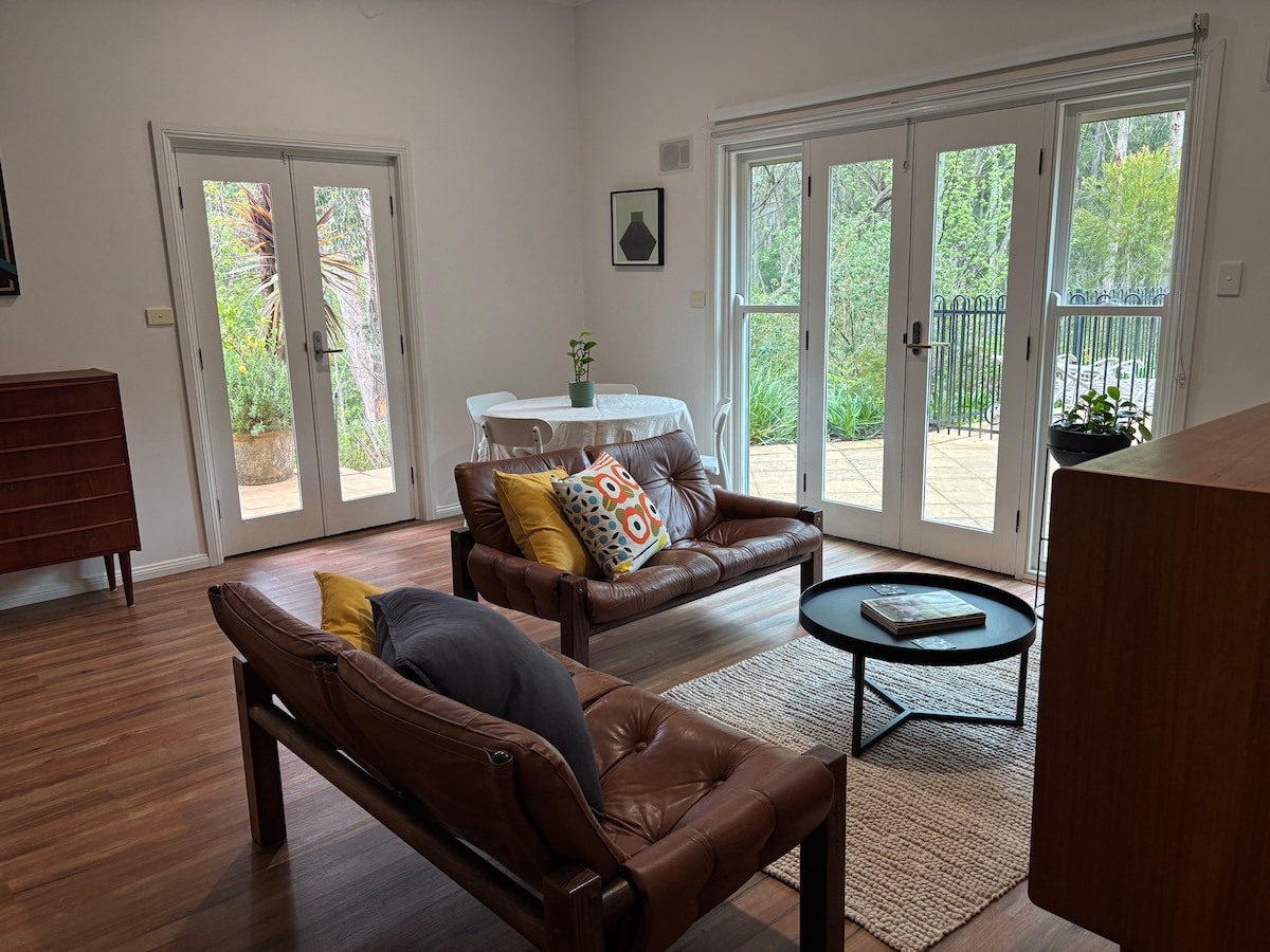 Menginaplah di loteng kami yang luas. Mohon diperhatikan: Dilarang MEROKOK. Apartemen ini berjarak beberapa meter dari rumah utama, namun sangat pribadi. Pemandangan ke laut dan kota. Tempat ini memiliki dapur kecil en - suite dengan wastafel, kulkas bar, kompor induksi, pemanggang listrik, microwave konveksi, mesin pod Nespresso, dan barang - barang dasar. Kolam renang tersedia. Sarapan dan camilan disediakan. Dekat dengan layanan tetapi tempat peristirahatan perbukitan di mana Anda mungkin mendengar koala dan Kookaburras. Biaya spa termasuk dalam harga per malam menginap.