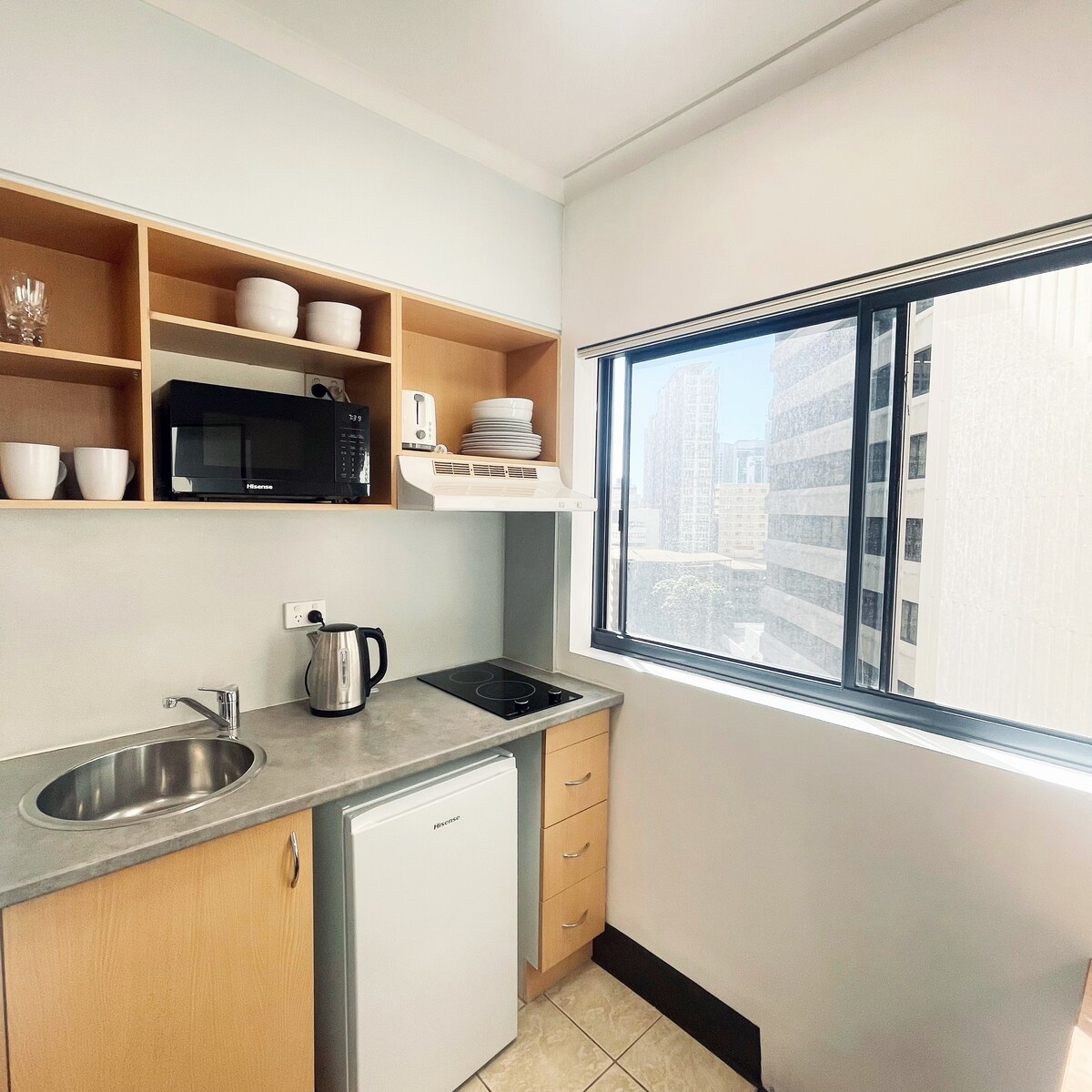 Apartemen Hotel Style Studio di Brisbane Selatan, dekat Gabba dan CBD. Tepat di sebelah Mater Medical Precinct. 5 menit ke Gabba, River Stage (di atas Goodwill Bridge) dan Exhibition Centre, 2 menit ke Mater Hospitals, Princess Theatre, 5 menit ke Southbank dan 10 menit ke CBD (semua berjalan kaki) Kolam renang dan parkir menyamar. Kunci Anda sendiri dan akses yang terpisah. Dapur kecil (kulkas kecil, microwave, kopi), AC, ramah hewan peliharaan. Meja dan Wi - Fi, kamar mandi, balkon sendiri, tempat tidur queen, brankas kunci.