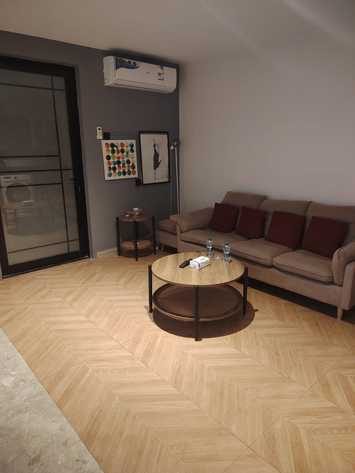 Apartemen dengan ruang tamu 8*8 yang dilengkapi dengan layar Samsung 85 inci, serta Netflix + Shahid Net + Wi-Fi 5G + sudut kopi lengkap + dapur lengkap + kamar tidur utama 4*8 lengkap + tempat parkir pribadi untuk apartemen di ruang bawah tanah dan tempat parkir luar.