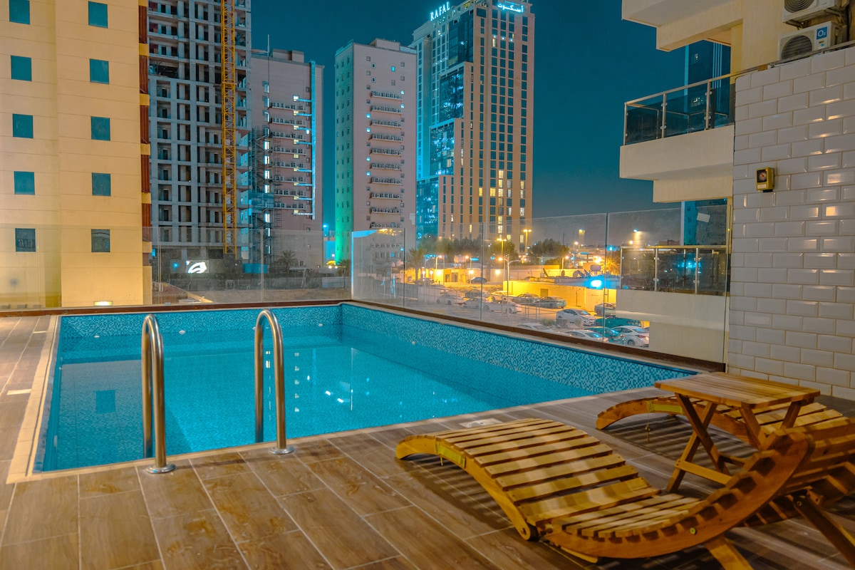 Kami telah mengubah konsep keramahtamahan di Airbnb, dengan menyajikan apartemen mewah ini, yang unik dalam segala hal: - Terletak di pusat kota dan dekat dengan Jalan Tahlia yang semarak, restoran mewah, dan pusat perbelanjaan terkenal. - Apartemen ini dirancang dengan sentuhan mewah dan detail modern yang halus,dan lantai kayu dari kayu Jerman berkualitas tinggi. - Anda akan langsung merasakan betapa luasnya tempat ini saat Anda masuk. - Tidur nyenyak di tempat tidur nyaman yang didukung kapas. - Kami peduli dengan kesehatan Anda sehingga Anda tidak perlu pergi ke gym, karena kami telah menyiapkan peralatan latihan yang diperlukan di apartemen.