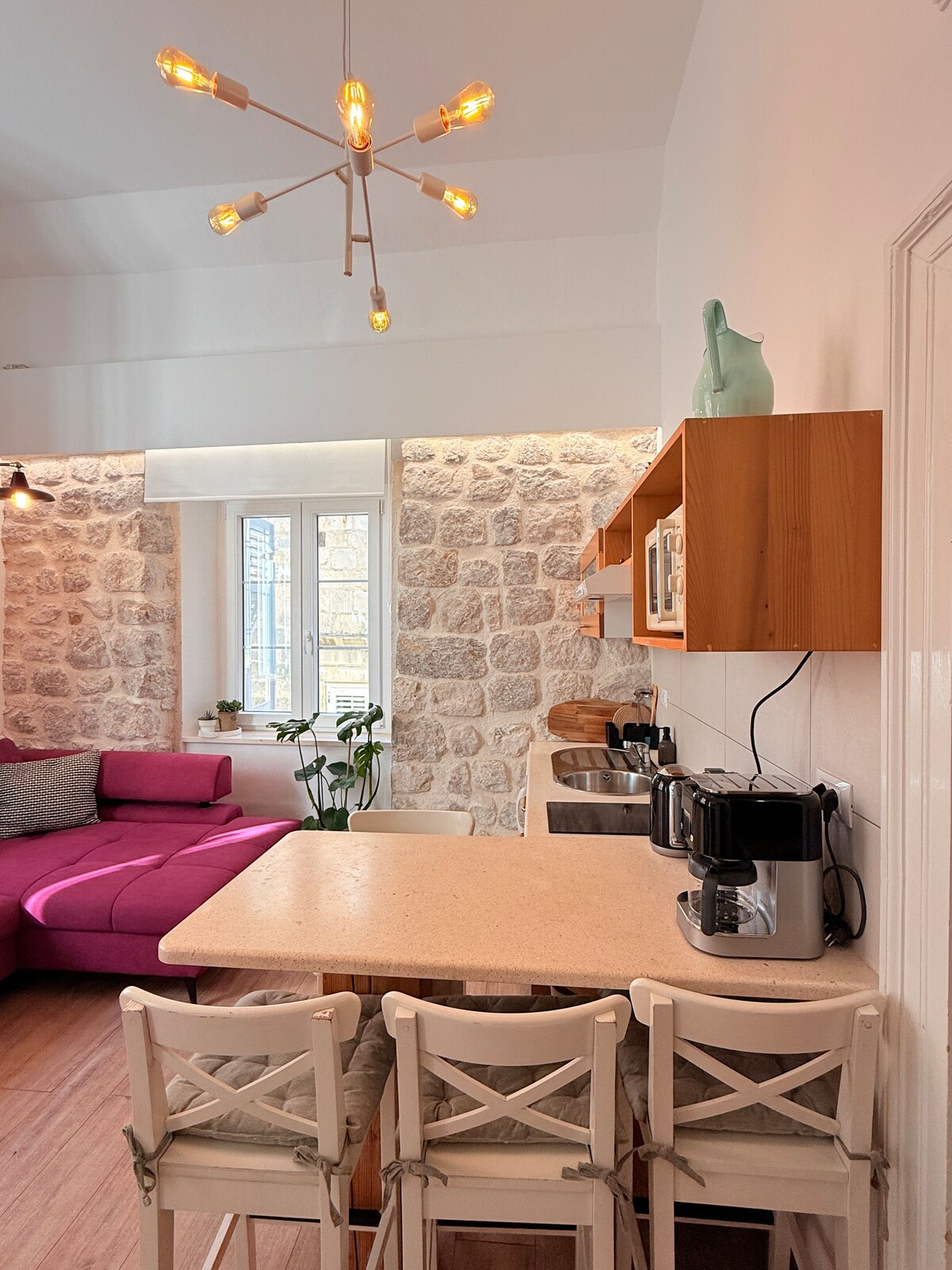 Nikmati masa inap yang nyaman dan nyaman di apartemen studio yang baru direnovasi ini di pusat kota tua. Apartemen ini memiliki dapur lengkap dan kamar mandinya sendiri yang luas, cocok untuk 2 tamu. Anda akan menyukai lokasinya, karena lokasinya tepat di samping jalan utama Stradun, tempat Anda bisa menemukan sejarah dan budaya Dubrovnik yang kaya dengan berjalan kaki.