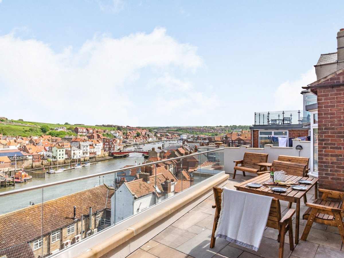 Apartemen balkon 2 kamar tidur yang nyaman dengan pemandangan laut yang indah, cocok untuk liburan pantai yang santai. Ruang tamu yang cerah, kamar mandi modern, dapur lengkap, Smart TV, dan WiFi cepat. Nikmati udara laut segar dari balkon pribadi Anda dan bersantai setelah berjalan-jalan di sepanjang pantai dan jalur tebing. Sangat cocok untuk pasangan atau keluarga kecil yang menginginkan kenyamanan, pemandangan, dan masa inap yang tenang di dekat Scarborough's North Bay dan kafe lokal.