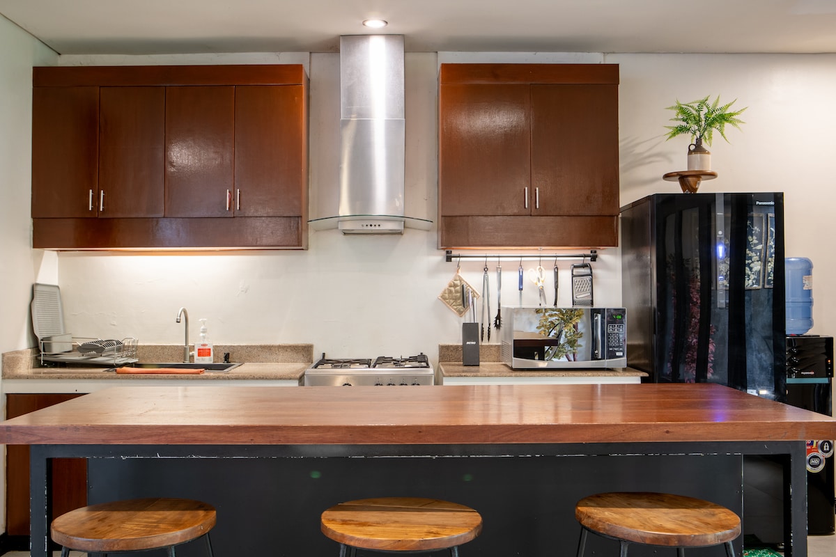 Terletak sempurna di pusat Poblacion, Makati Restaurant and Entertainment District, unit kami berlokasi di lantai 2 gedung kondominium butik dengan keamanan 24 jam. 1br kami memiliki interior dan fasilitas modern Indonesia, Bali termasuk TV 55", Netflx, 550 Mbps, dengan dapur lengkap. Berjalanlah ke bar terdekat, restoran kasual, dan tempat makan mewah. Rasakan seni dan budaya! Destinasi sempurna untuk pasangan, petualang solo, pelawat bisnis, perjalanan singkat, dan liburan!
