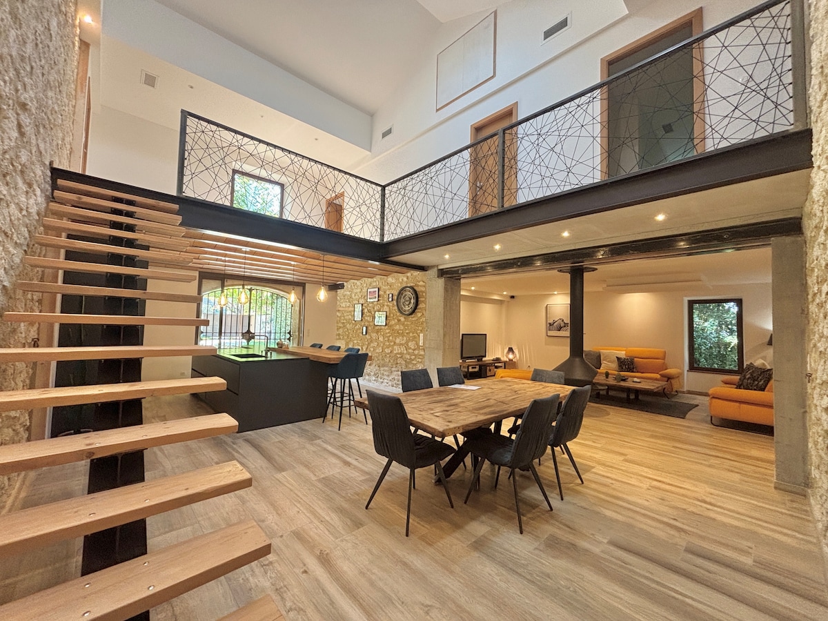 LOFT baru kecil dengan gaya Industrial dan Modern seluas 40 m2 untuk 2 orang (tetapi kemungkinan tidur 1 anak di sofa tambahan). Loteng ini berada di Wine Estate di tengah - tengah kebun anggur. Tempat ini terhubung ke rumah negara pemiliknya, tetapi benar-benar independen. Pintu masuknya di sebelah utara bastide. Akses ke kolam renang pemilik (dari 07/01 hingga 09/15) dan lapangan petanque setiap hari mulai pukul 10.00 hingga 18.00. Pada hari kedatangan Anda, kolam renang dapat diakses hingga pukul 19.00.