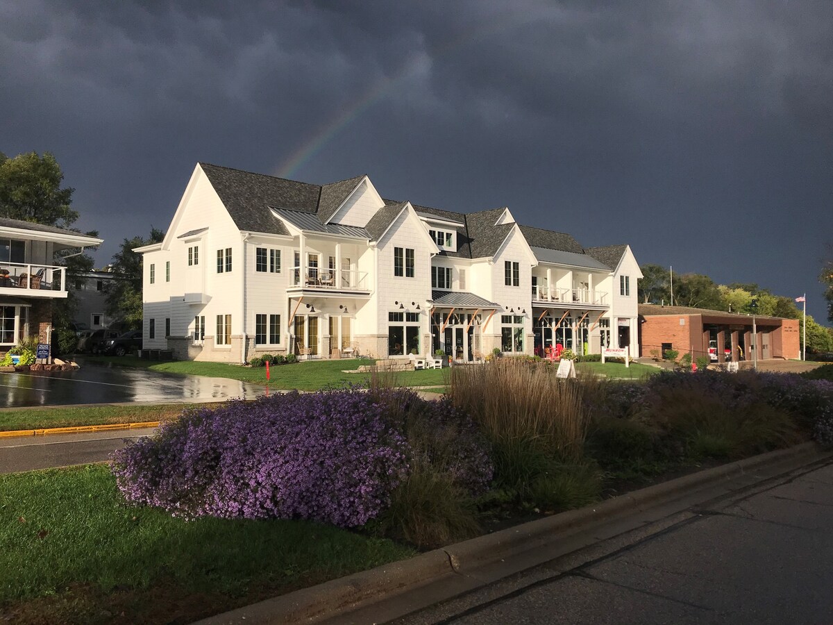 If you want the best of Lake Geneva from the one of the hottest locations in the city this then you will love staying here! You are a block from great restaurants, bars, the Riviera docks, the Riviera beach, boat rentals, shopping, and more. You'll park your car in our free parking and not need it for the rest of your stay. Relax in your private suite, or sit and enjoy the outdoor balcony with a beautiful view of the lake and downtown. When you’re ready to enjoy the town, simply step outside
