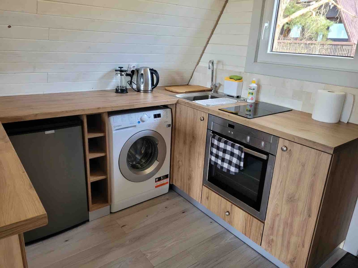 Apartemen lantai dasar yang nyaman dan modern (selesai dibangun pada tahun 2016) untuk dua tamu (+ tempat tidur junior 165 cm), yang terletak di cottage terpisah di taman tua yang merupakan bagian dari perkampungan pabrik swasta bekas yang luas (36 hektar), “Uroczysko Połomja,” yang berada di Taman Lanskap Jurajski. Luas pondok seluas 47m2, termasuk kamar tidur double, dapur dan ruang tamu dengan sofa bed (2 orang), kamar mandi dengan toilet dan shower, kamar dengan lemari pakaian dan tempat tidur junior. Teras dengan tenda (14 m2), perabotan taman, dan barbekyu. Wi-Fi.