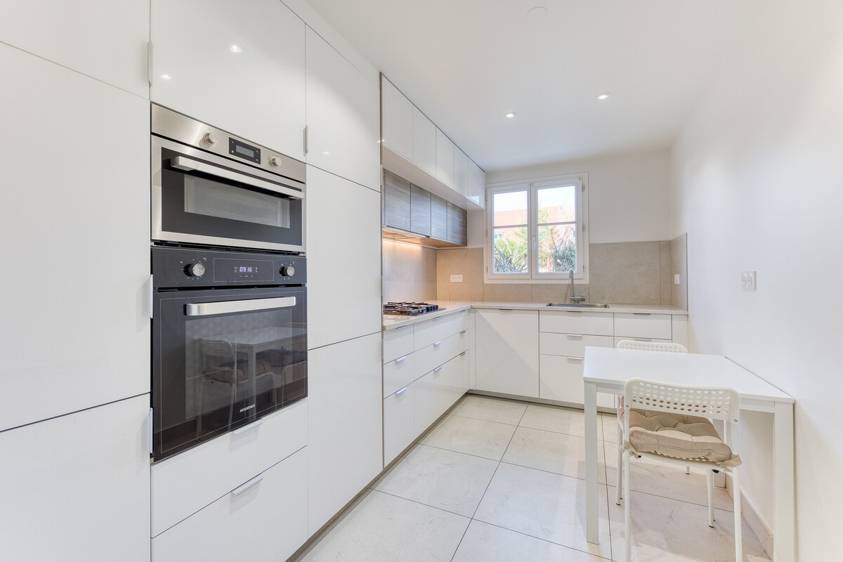 Townhouse kecil yang menyenangkan seluas 27 m2 direnovasi, nyaman dan cerah. Akomodasi ini dekat dengan semua fasilitas seperti toko roti, tembakau, toko kelontong, penata rambut/tukang cukur, kantor pos... Tempat tidur ganda di kamar tidur dengan perlengkapan tempat tidur baru. Kasur dibeli pada bulan Februari 2024 Bed and box spring dibeli pada bulan Juni 2024. Bantal baru sejak pertengahan Desember 2025. Pasar tertutup 2 menit berjalan kaki pada Sabtu pagi