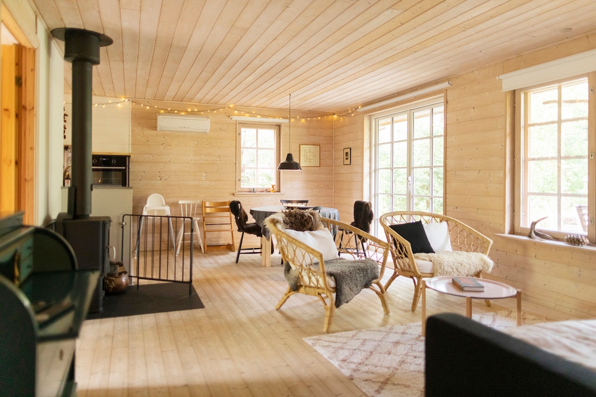 138m2 hyggeligt, sauna, billader, nær strand og by