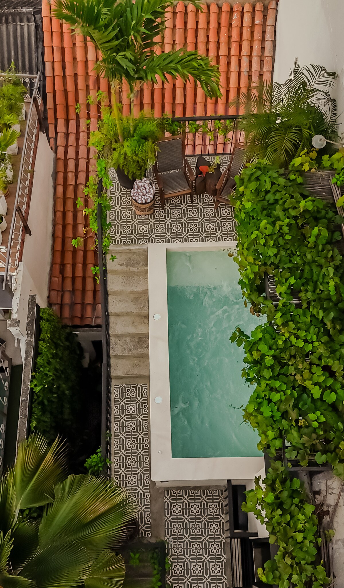 Villa kolonial mewah di Getsemaní dengan staf 24/7 untuk pembersihan dan keamanan kamar harian. Rumah 6 kamar tidur yang ikonis ini memiliki kolam renang pribadi, teras atap, dan sarapan setiap hari. Terletak beberapa langkah dari Café Havana, tempat ini memadukan arsitektur berusia 200 tahun dengan desain modern untuk masa inap Cartagena yang tak terlupakan. Diakui oleh Airbnb karena memiliki salah satu kolam renang terbaik di dunia dan ditampilkan dalam publikasi arsitektur dan gaya hidup internasional.