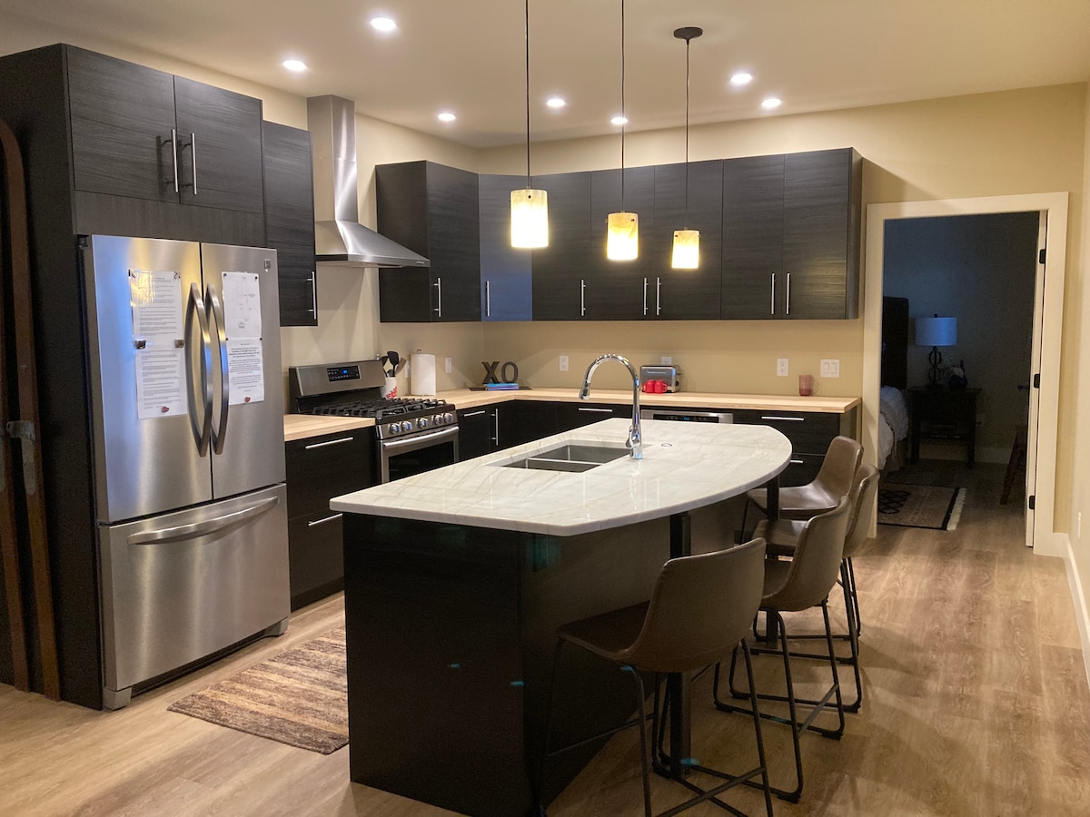 Suite 2 kamar tidur eksekutif seluas 1100 kaki persegi kami yang indah menawarkan pemandangan Kootenays yang luar biasa tanpa terhalang. Dek pribadi seluas 800 kaki persegi menyediakan tempat untuk menikmati matahari terbit yang sensasional dan BBQ untuk menyiapkan makanan saat matahari terbenam. Dapur gourmet berisi semua yang Anda butuhkan, atau kami hanya berjarak 5 menit berjalan kaki singkat ke kota. Parkir di luar jalan, pintu masuk terpisah dengan keypad, dan termasuk laundry. Tamu memiliki akses ke loker ski di Red Mountain dan penyimpanan sepeda yang aman di lokasi.