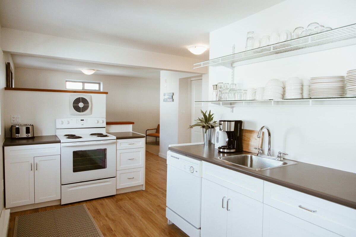 Kick off your shoes and take in the serene view at our cozy hilltop suite. Enjoy a kitchen stocked with every comfort you expect, plus specialty coffee equipment you’ll love. Wind your way across the road and down the trail to our private sandy beach, and roast some marshmallows on the campfire while you’re there. Novelty and adventure are nearby: only 3 minutes to Nelson, 28 minutes to Whitewater Ski Hill, and 1 minute to Lyons Bluff hiking trail.