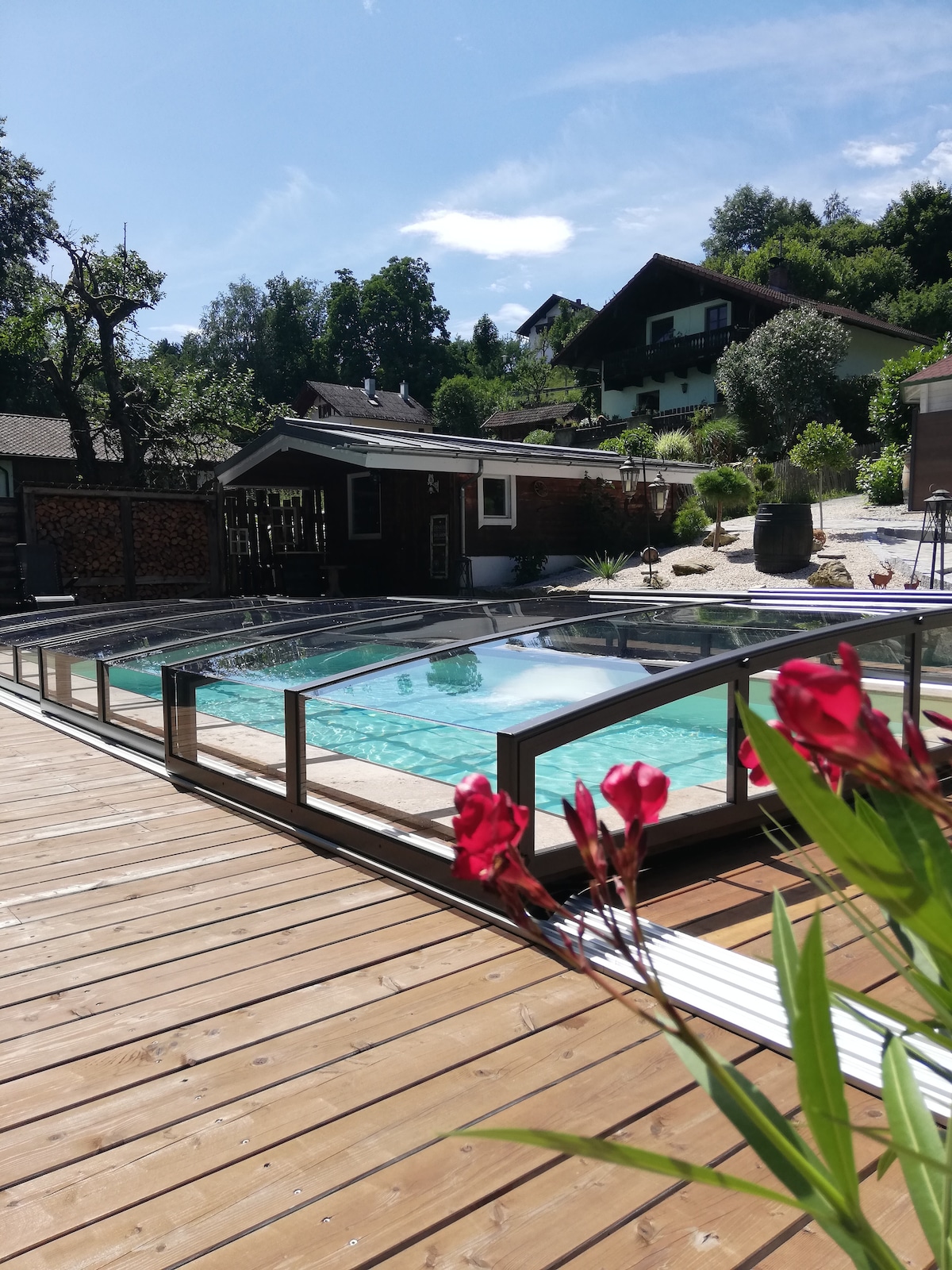 S'loaneWellnesshäusltempat untuk bersantai – di akomodasi yang luas dan tenang ini dengan kolam renang musim panas, bak mandi kayu, dan sauna taman untuk bersantai. Pondok pribadi ini telah direnovasi pada tahun 2023 dengan penuh cinta. Pegunungan Alpen Bavaria, Danau Chiemsee, serta beberapa danau berenang dan bersepeda di Inn menawarkan wisata dan peluang rekreasi yang luar biasa. Tidak boleh membawa hewan peliharaan. Biaya tambahan yang harus dibayarkan secara lokal: - Kayu bakar per kantong 15 € - Pembersihan akhir satu kali 98 €