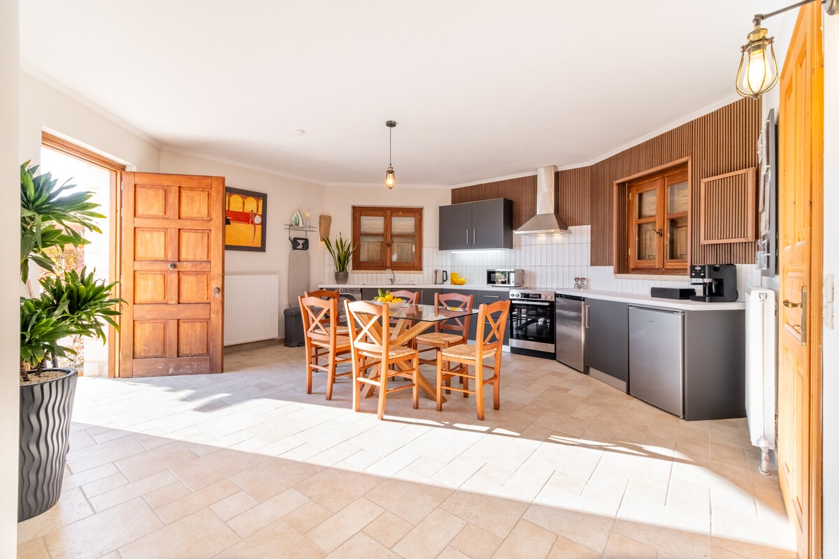 Terletak di tengah - tengah pemukiman tua kecil, terletak rumah ini beserta FOS kembarnya. Menghadap Afales Bay yang mengesankan, rumah ini memiliki perasaan santai dan keanggunan yang halus. Pada siang hari, angin sepoi - sepoi yang menyegarkan mengalir, di malam hari aroma melati memenuhi udara. Rumah berkualitas tinggi ini sangat ideal untuk orang - orang yang mencari ketenangan alam dan kesederhanaan kehidupan desa, sambil menikmati fasilitas modern. Situs arkeologi "Homer's School" terletak di dekatnya.