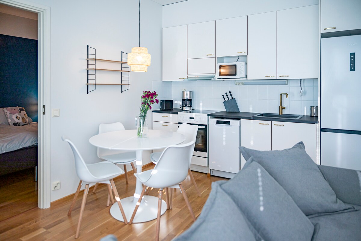 Apartemen baru yang cerah dan modern di lantai dua gedung berlantai dua. Rumah ini memiliki atrium halaman bersama yang luas. Apartemen ini memiliki 2 kamar, dapur terbuka, sauna, balkon, seluas 46 m2. Daerah yang berbeda, dekat dengan Ounasvaara dan layanan lainnya. Dalam radius satu kilometer, Anda dapat dengan mudah menemukan segala sesuatu mulai dari layanan hingga hobi. Stasiun kereta api: 2,6 km Bandara: 11 km City Center: 1,9 km Arctic Circle: 2,8 km Arctic Circle / Santa 's Village: 9,9 km