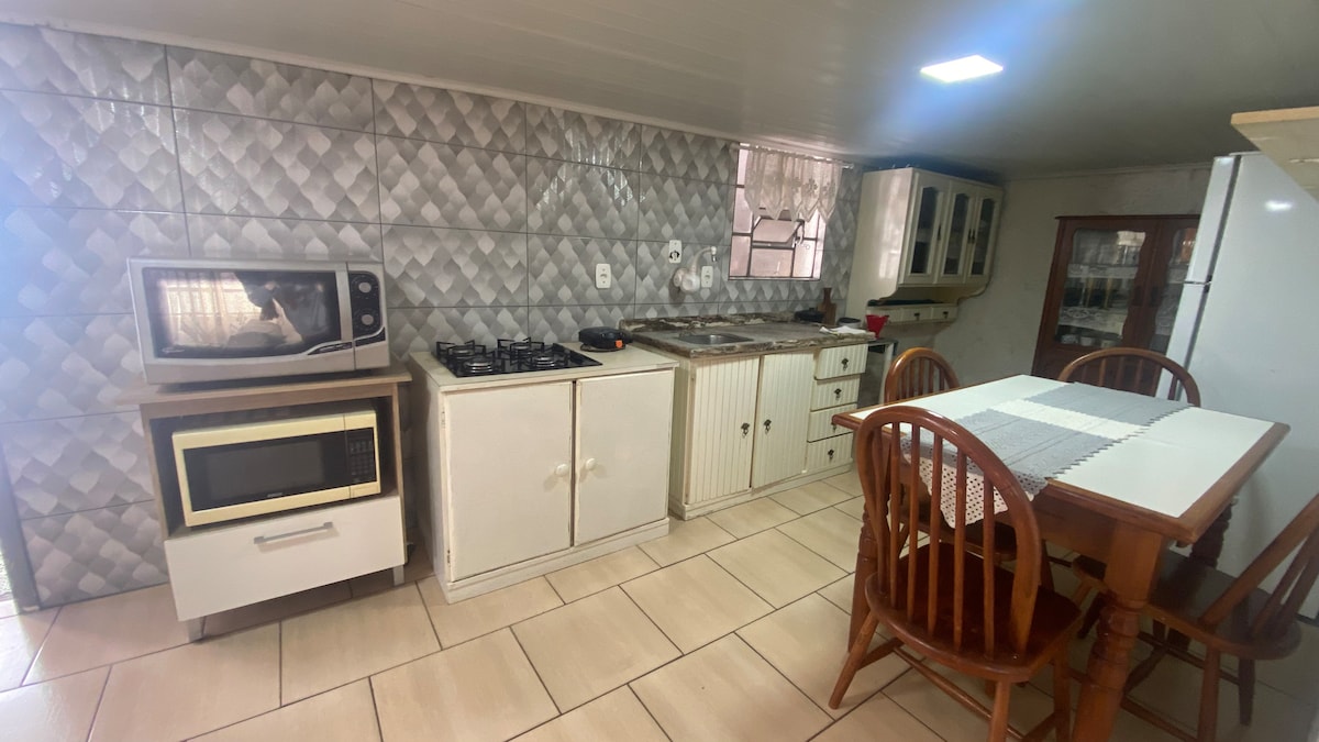 Chalet nyaman di pusat Kota Canela, dekat dengan restoran terbaik, 200 meter dari Katedral Batu dan 200 meter dari alun - alun utama Kota dengan infra lengkap untuk anak - anak, 200 meter dari Covered Street. Kondominium tertutup dengan kios dan area barbekyu sangat cocok untuk menikmati Serra Gaúcha bersama keluarga Anda. Pintu masuk dibuat dengan kata sandi tanpa perlu kunci.