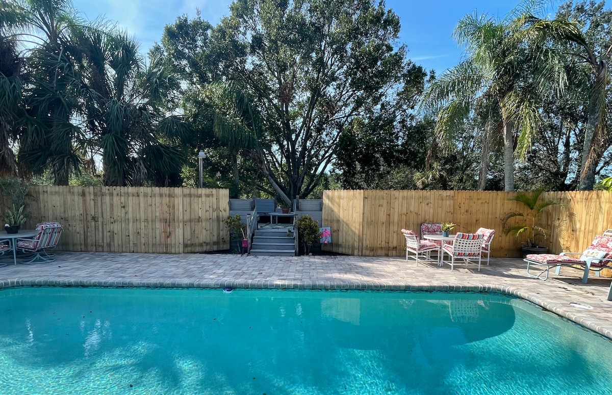Bless your heart and soothe your soul! Here's a hidden retreat, an escape to Old Florida charm, with a lot of space to unwind. This is a mini-farm in the making, with friendly funny chickens begging for treats! After a day at the beach or fishing, take a dip in the pool, relax in the hot tub, or sway in a hammock under the oaks with a good book. Build a bonfire, make s'mores. A starry sky is the limit! All travelers, locals and lifestyles welcome.