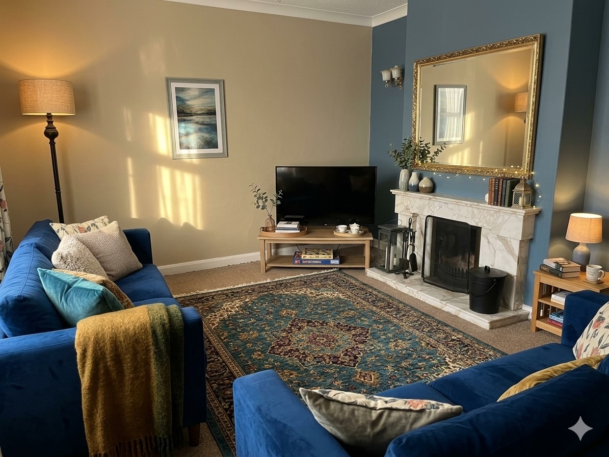 Pondok 3 kamar tidur yang luas tersedia secara keseluruhan properti terpisah. Parkir di luar jalan, taman tertutup kecil. Ideal untuk keluarga dengan kamar tidur utama dengan tempat tidur super king, kamar lain dengan 2 tempat tidur single yang berbagi kamar mandi keluarga, shower walk - in. Di lantai bawah terdapat kamar ganda dengan kamar mandi yang berdekatan. Terletak di desa tak jauh dari jalan yang menghadap peternakan keluarga kami. Anjing dipersilakan - cukup beri tahu kami. Kesempatan untuk mengunjungi kuda sesuai pengaturan termasuk kuda dan kuda di musim panas.
