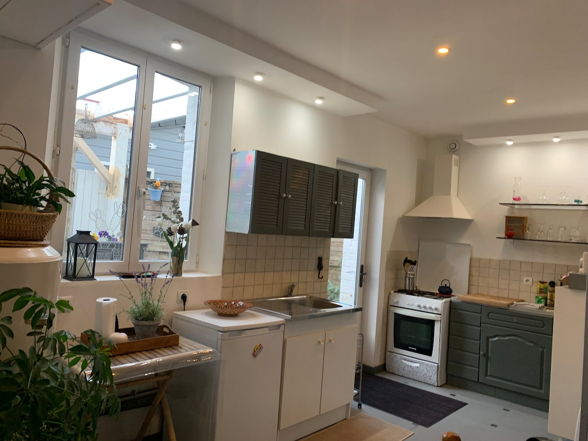 Rumah yang baru direnovasi untuk 4 orang dengan 2 kamar tidur, kamar mandi dan dapur pas, halaman dalam ruangan dengan furnitur taman, payung dan barbekyu; terletak di gang yang sangat tenang, stasiun kereta api di 300 meter, parkir gratis di 50 meter. Kedekatan Le Crotoy, pantai Quend dan Fort Mahon House located in the small historic town of Rue 80120: Belfry, Chapelle du Saint Esprit, regional market on Saturday morning Minimal sewa dua malam Pembersihan akhir masa inap termasuk Hewan peliharaan tidak diizinkan